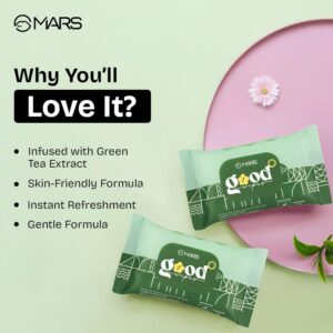 MARS Good pH Balance Refreshing Wipes (10 Wipes) | Green Tea Extract | Hydrated & Glowing Skin On-The-Go | Removes Light Makeup | Skin Friendly