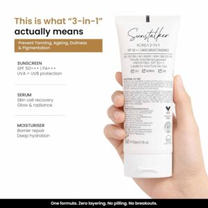 Personal Touch Sunscreen SPF 50 PA+++ for Face | Sunstalker Korea 3 in 1| Lightweight Sunscreen with No White Cast | Non-Greasy, Acne Safe & Oil-Free | With Niacinamide | For Oily & Dry Skin | 50 ml