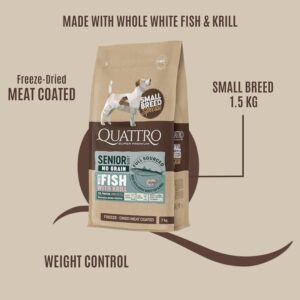 Quattro Super Premium Senior/Light Dog Food for Mini Breeds – White Fish & Krill, 1.5 kg