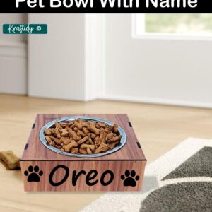 Dog And Cat Feeding Bowl With Name Customized For All Breeds Small Medium Or Large Adult Big Size Dogs Food Eating Or Water Bowl Pet Feeding Bowls (Wooden) (With Name) – 25 X 20 X 5 Cm