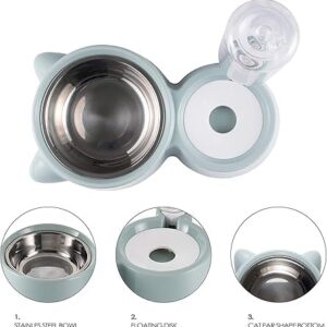 Double Cat Water and Food Bowls Set with Automatic Gravity Water Dispenser Stainless Steel Removable Dog Feeder Bowl for Small Medium Pets Blue