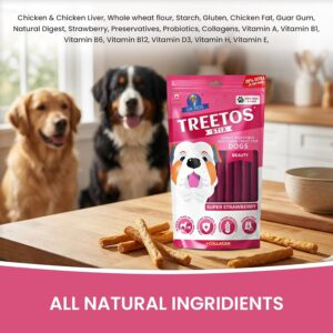 Dr. Pets Pack of 2 Treetos Dog Treats for Adult Dogs & Puppies 85g Chicken Sticks Dog Chew Stick Soft Puppy Treats Super Strawberry Pet Food “Dr. Pet – The Trusted Choice of Indian Pets.”