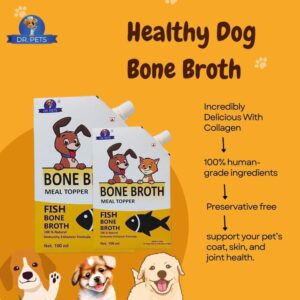 Dr.Pets Fish Bone Broth for Cats & Dogs (100ml X 3 Pack) Food Topper, Human Grade Preservative Free, Cat/Dog Wet Food Soup for All Life Stages, Natural Supplements with Natural Collagen.