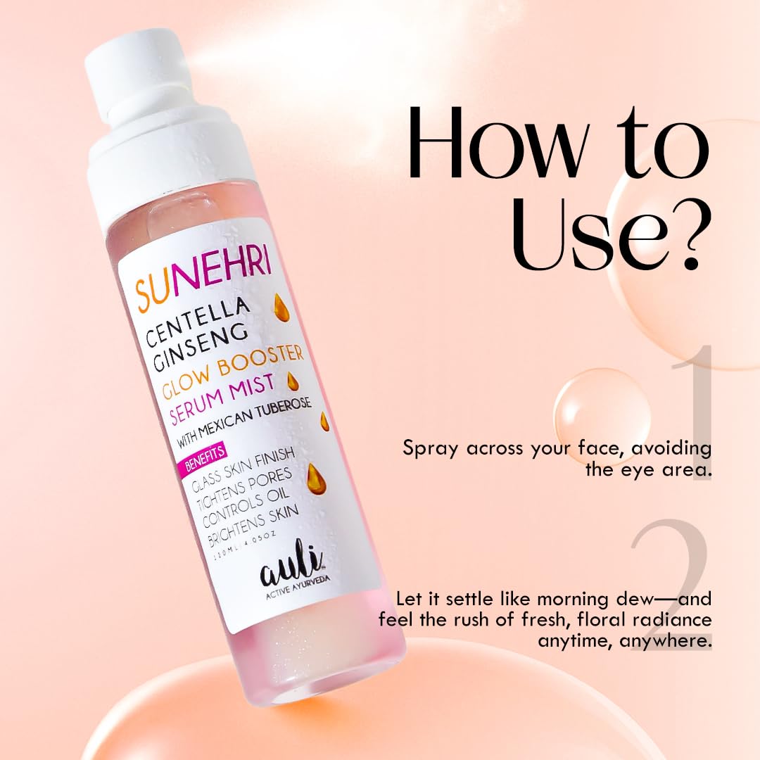 AULI LIFESTYLE Sunehri Serum Mist with Floral Waters, Rosehip Oil, Ginseng & Centella Asiatica | Hydration, Glow & Pore Refining Face Mist | All Skin Types | 120 ml