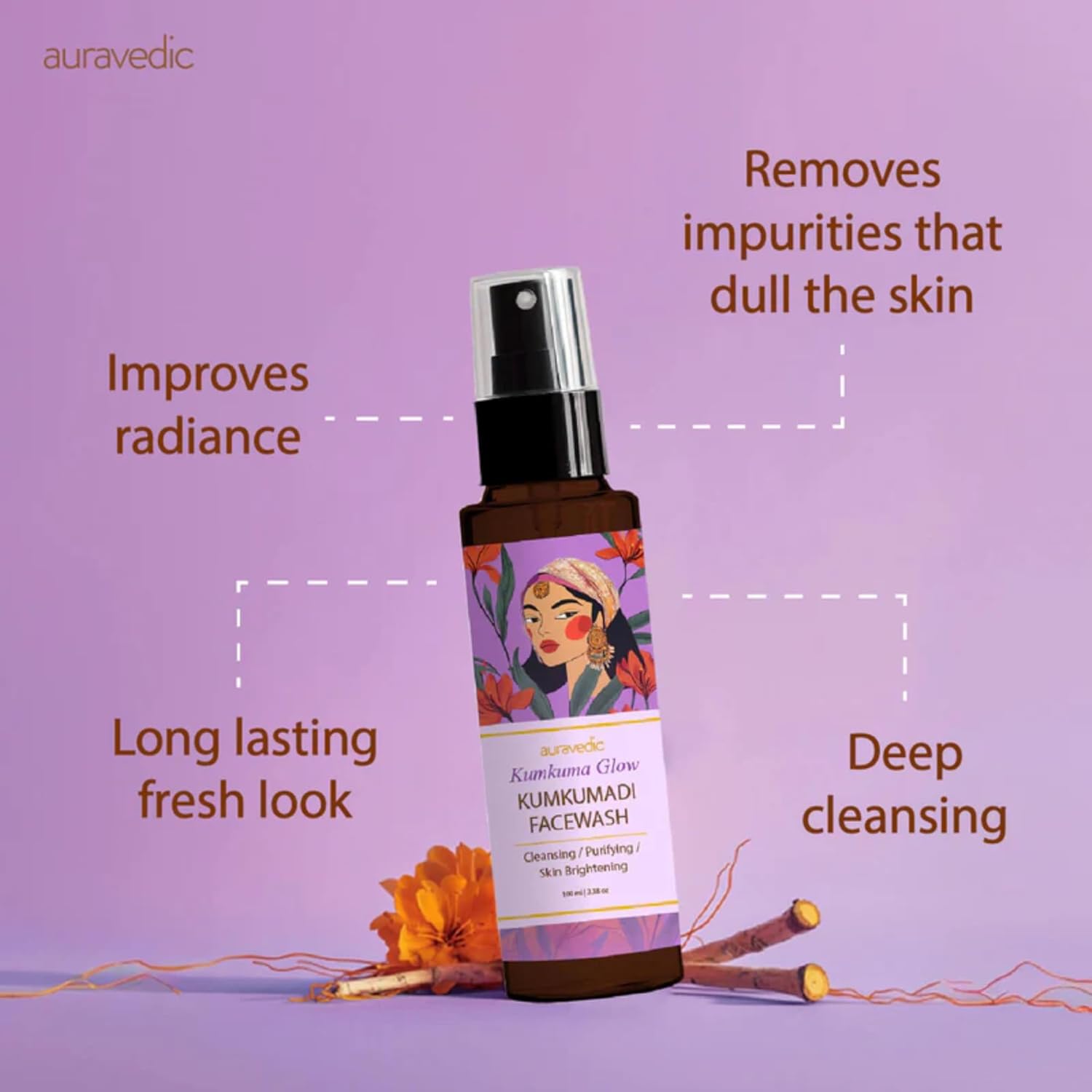 Auravedic Kumkumadi Face Wash For Women Men 100ML Best Facewash For Glowing Skin Kumkumadi Tailam Niacinamide Face Wash For Oily Skin Dry Combination with Kumkumadhi oil Brighening Facewash