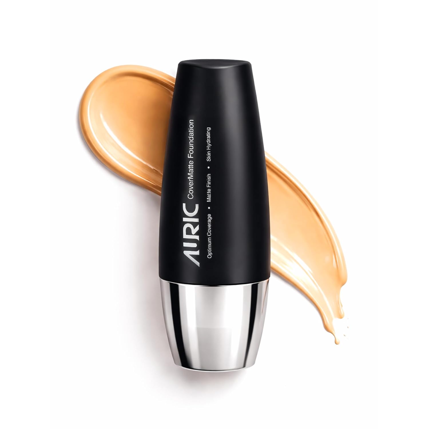 Auric CoverMatte Flawless Finish Hydrating & Long Lasting Liquid Foundation (30ml) with Matte Finish & Optimum Coverage I Paraben Free I Warm Chestnut
