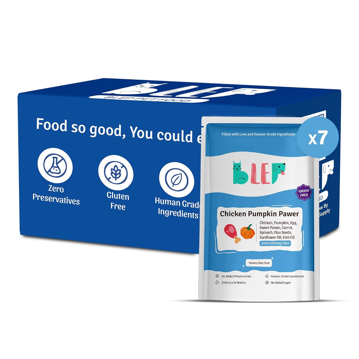 BLEP Chicken Pumpkin Pawer 700g (7 Pack of 100g) – Fresh Dog Food for All Ages|Chicken Breast, Pumpkin, Vegetables, Omega 3 & 6|Grain Free, High Protein, Easily Digestible, Zero Preservative(Wet)