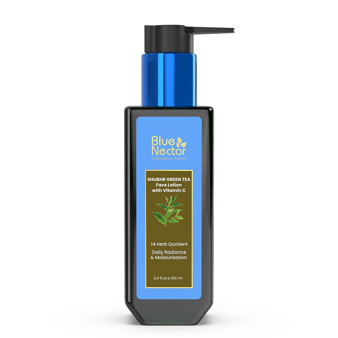 Blue Nectar Green Tea Face Cream Moisturizer for Oily Skin with Hyaluronic Acid, Vitamin C, Rosehip for Women and Men (14 Ayurvedic Herbs, 100ml)