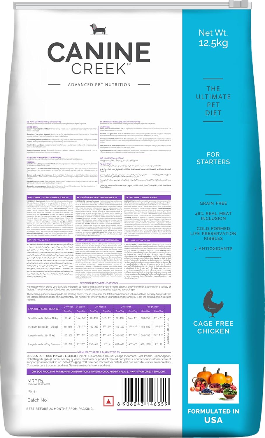 Canine Creek Ultra Premium Starter Dry Dog Food ,12.5+1Kg Total 13.5Kg Pack