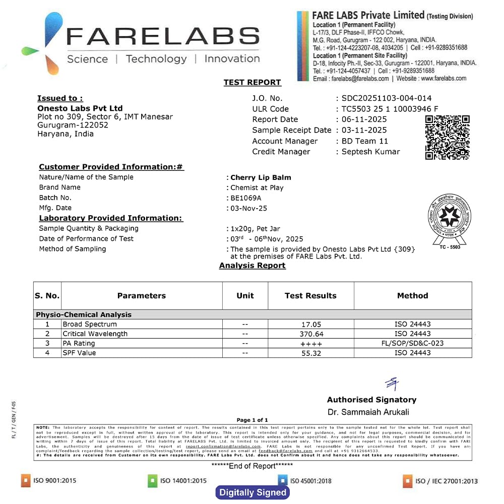 Chemist At Play Tinted Cherry Lip Balm with SPF 50 PA++++ | 1% Kojic Acid | Lip-balm for Dark and Dry Lips | Moisturising Lip Balm for Chapped Lip | Brightens Dark Lips | For Men & Women | 4.5 g