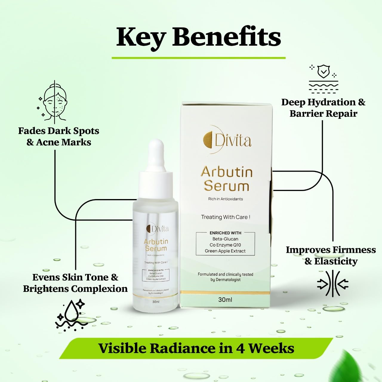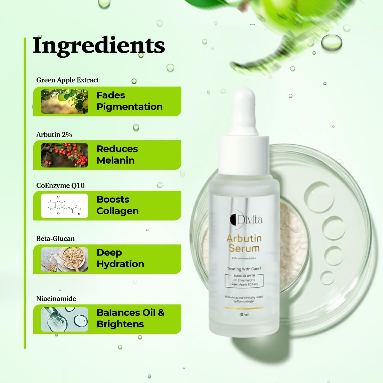 DIVITA 2% Arbutin Serum, 30 ml | With Green Apple Extract & CoEnzyme Q10 | Repairs & Firms Skin | Anti-Pigmentation Serum for skin repair, hydration, and barrier support | All Skin Types
