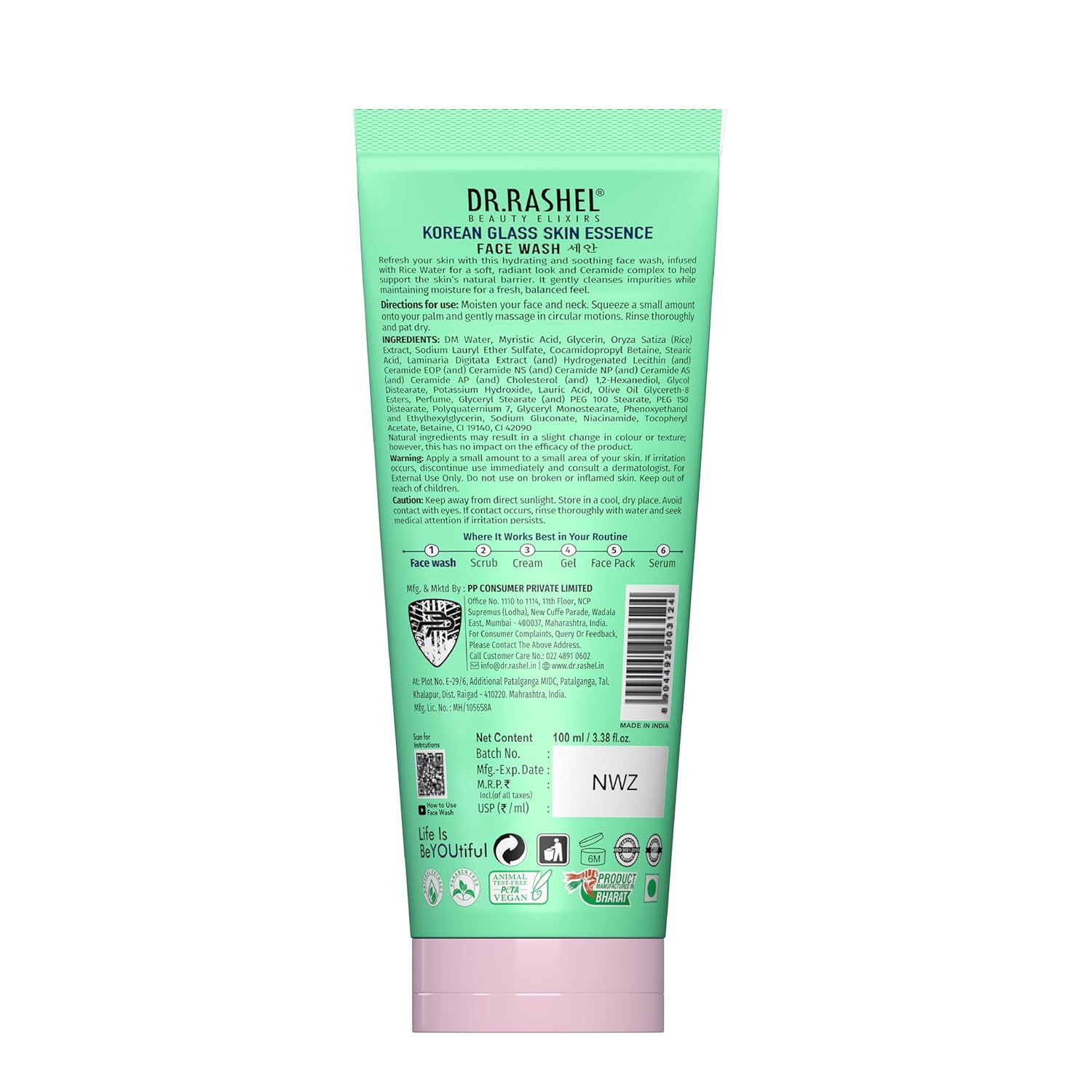 DR.RASHEL Korean Face Wash | With Rice Water & 1% Ceramide Complex | Brightening | Hydrating | Gentle Cleanser For All Skin Types | 100ml