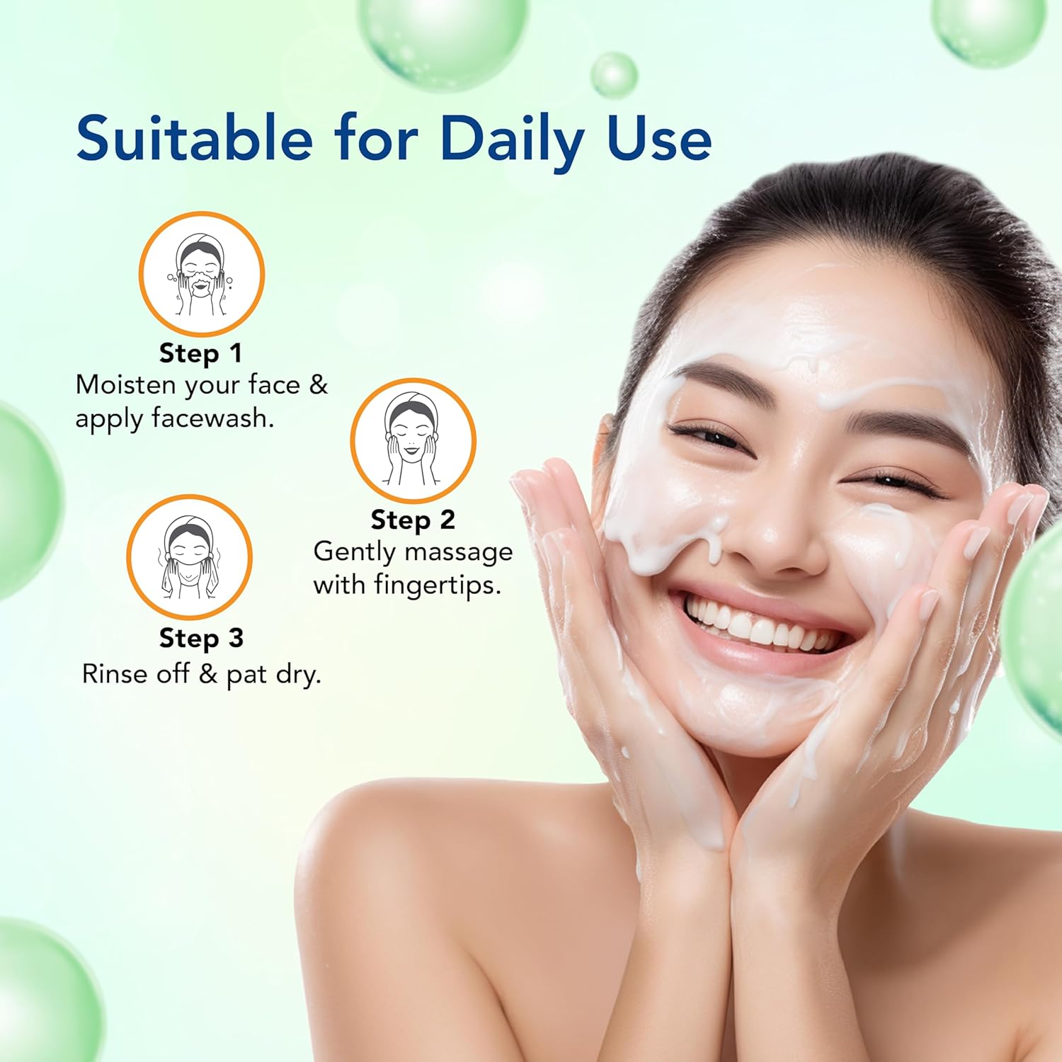 Moisten your face, take a small amount of the Korean Glass Skin Face Wash, and gently massage onto your skin. Rinse thoroughly with water and pat dry with a soft towel. Use daily for best results.
