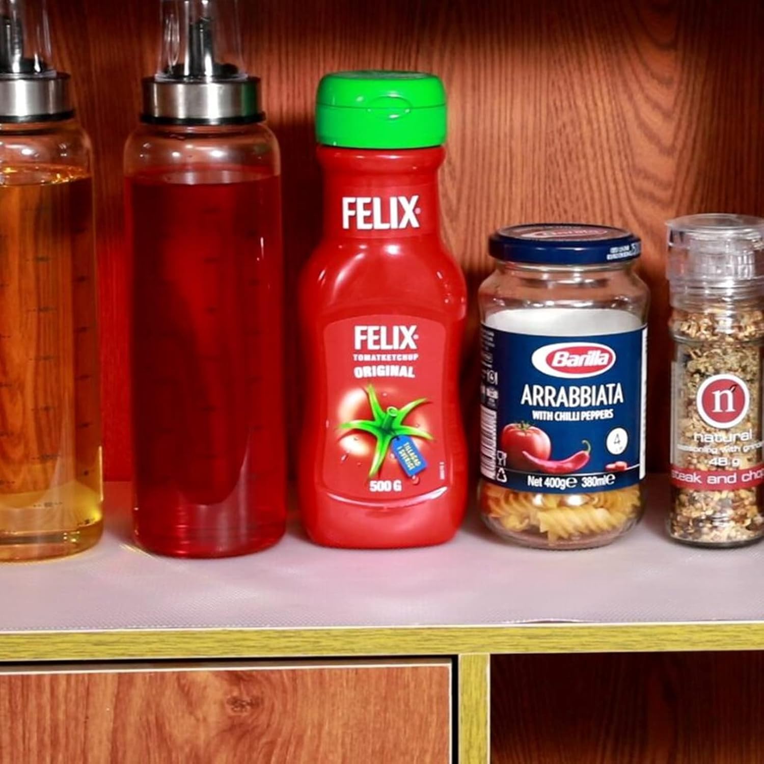 🎄【ANTI OIL& WATERPROOF】🎄 The fridge liner is waterproof and anti-oil which keeps your cabinet, drawer, refrigerator from slimy, greasy. The non-adhesive shelf liners can be easily removed from your cabinets and you can directly rinse the liner with water.