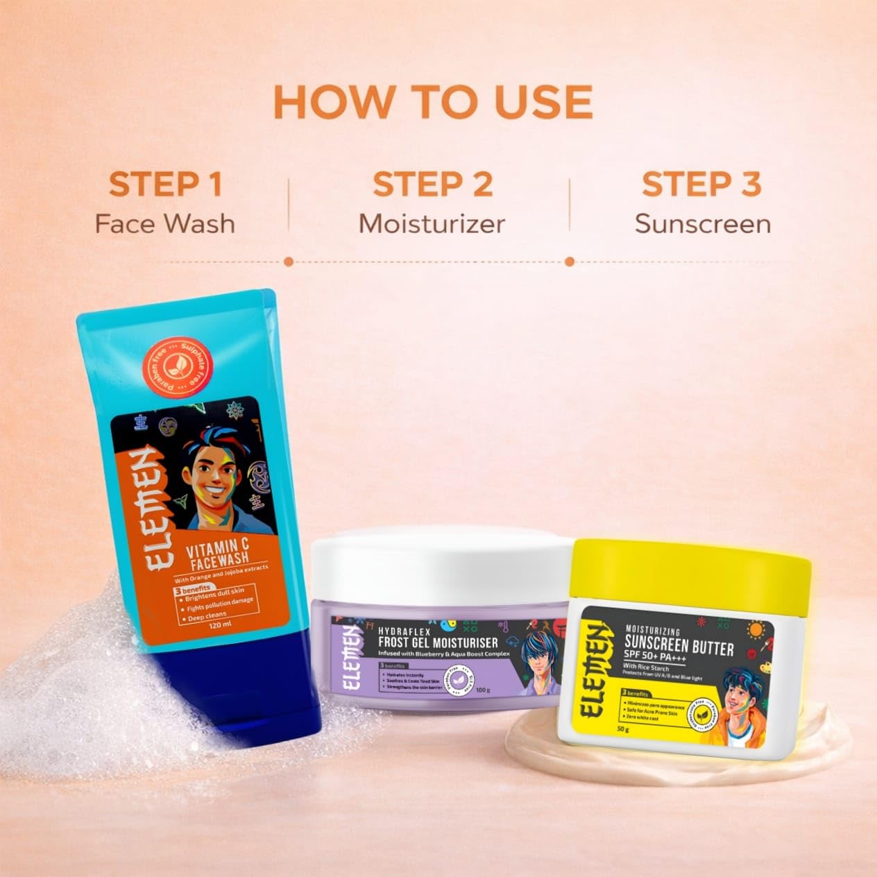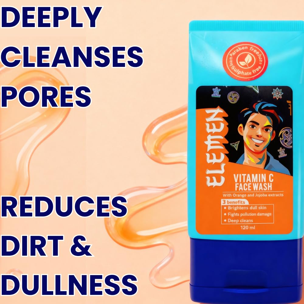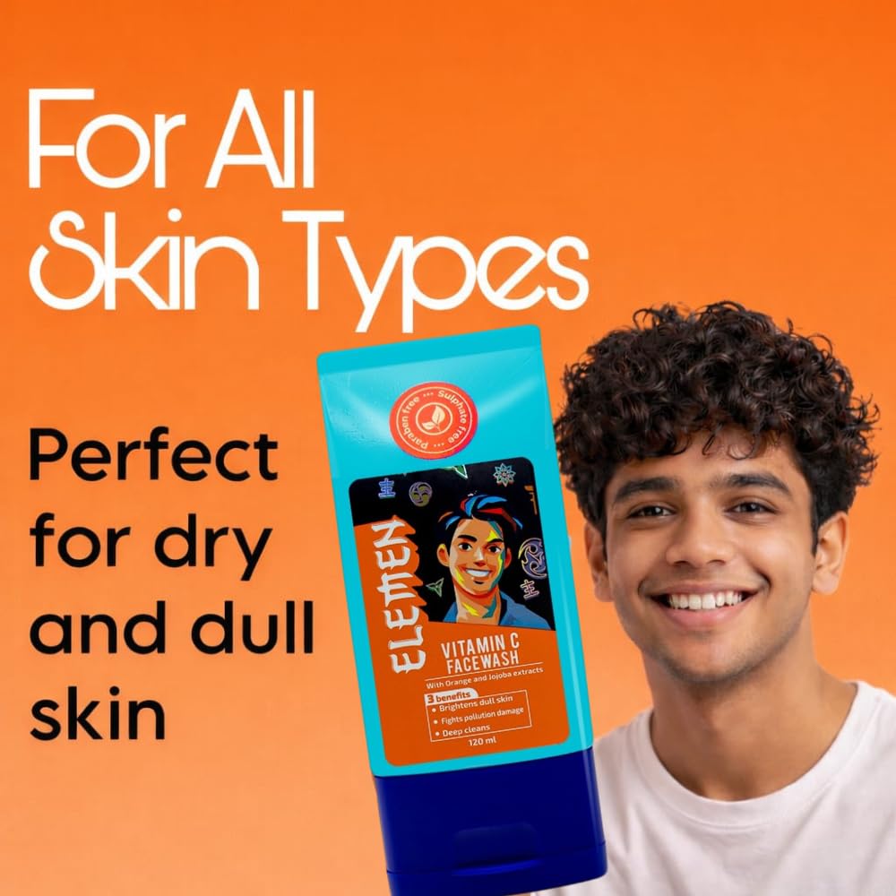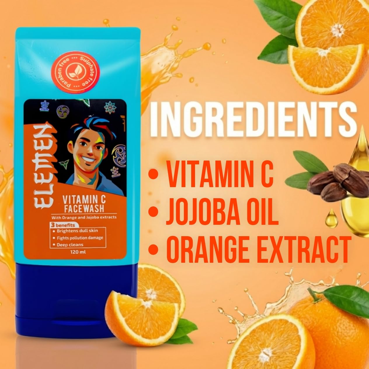 Elemen Vitamin C Face Wash for Boys (120ml) | De-tan & Glow Face Wash for Teens | Tan Removal & Skin Brightening | Gentle for Kids 10-18 Yrs | Sulfate Free