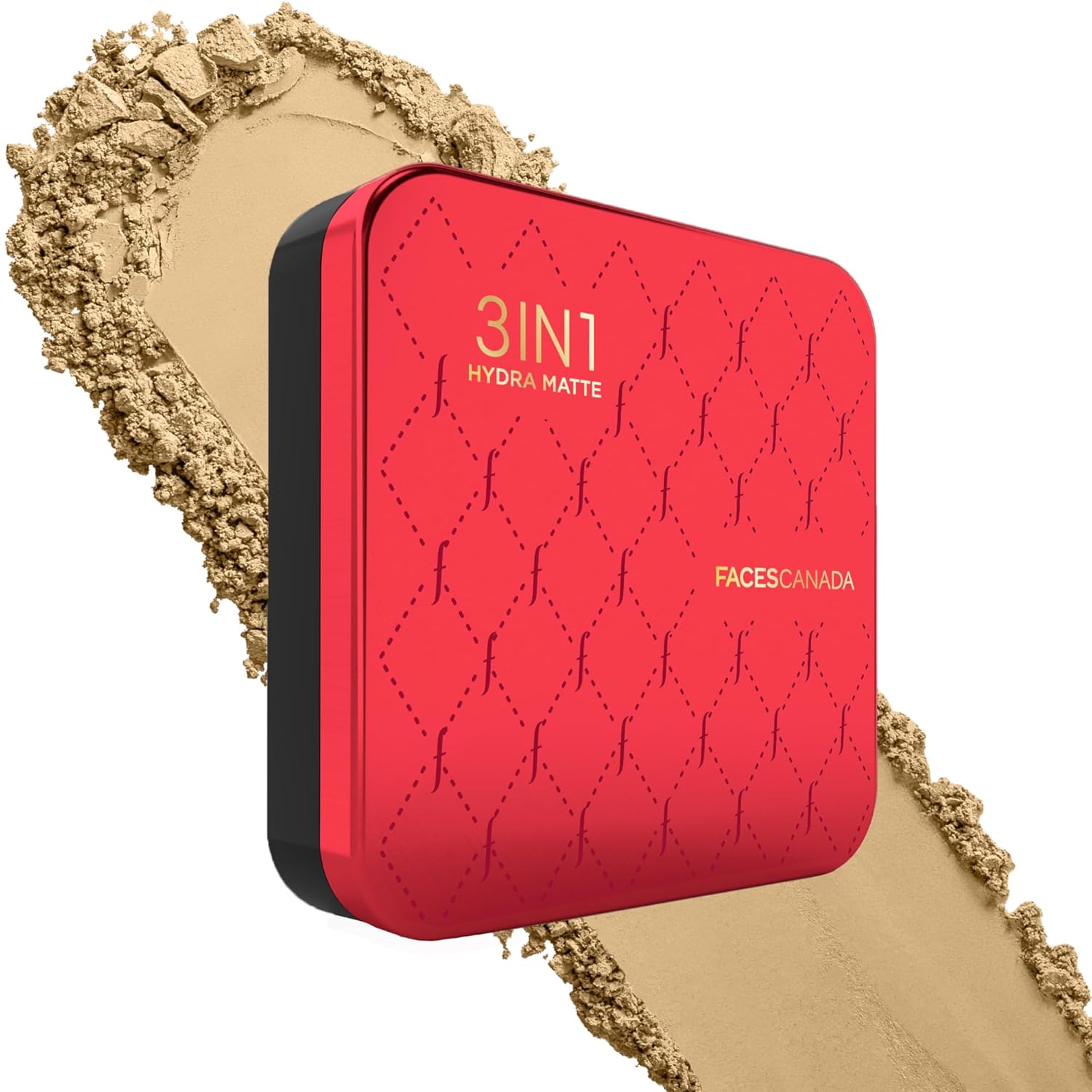 Introducing the Faces Canada 3in1 Hydra Matte Compact with SPF 15 — your ultimate multitasking beauty essential that hydrates, mattifies, and protects in one seamless step. Crafted with natural skin-loving extracts, this compact goes beyond makeup to care for your skin, offering a smooth, shine-free finish that lasts all day. Available in 6 versatile shades tailored to flatter every Indian skin tone, the 3in1 Hydra Matte Compact is designed to mattify, control oil, and deliver breathable coverage without ever drying out your skin. Its smart formula instantly absorbs excess grease, sweat, and shine to set your makeup and refresh your complexion, while controlling oil throughout the day. The feather-light texture feels weightless on the skin, delivering comfortable wear from AM to PM. Whether you’re aiming for a natural everyday glow or buildable medium-to-high coverage, this compact adapts to your needs without caking or creasing. Enriched with SPF 15, it adds a layer of sun protection to your routine, making it perfect for daily wear. Hydration. Coverage. Sun Protection — all in one compact.