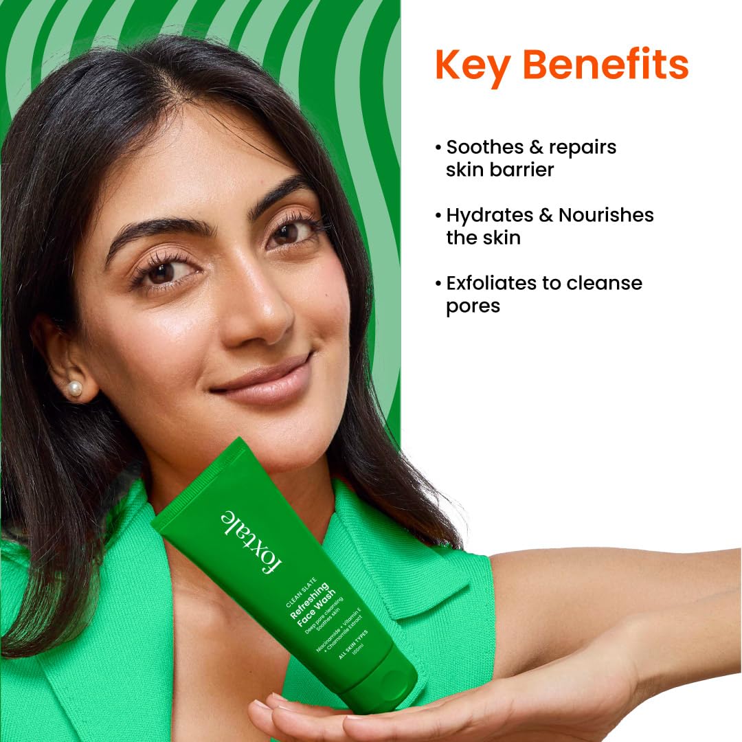 Foxtale Refreshing Face Wash for Deep Cleansing with Niacinamide, Hydrates & Brightens, Non-Drying Cleanser for Glowing Skin, Men & Women, For All Skin Types – 100 ml