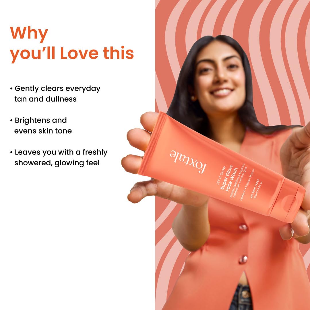 Foxtale Vitamin C Super Glow Face Wash with Papaya enzyme | Reduces Tan | Boosts Glow | Gently Exfoliates & Brightens Skin | Reduces Pigmentation | Face Wash for Men & Women- 100ml