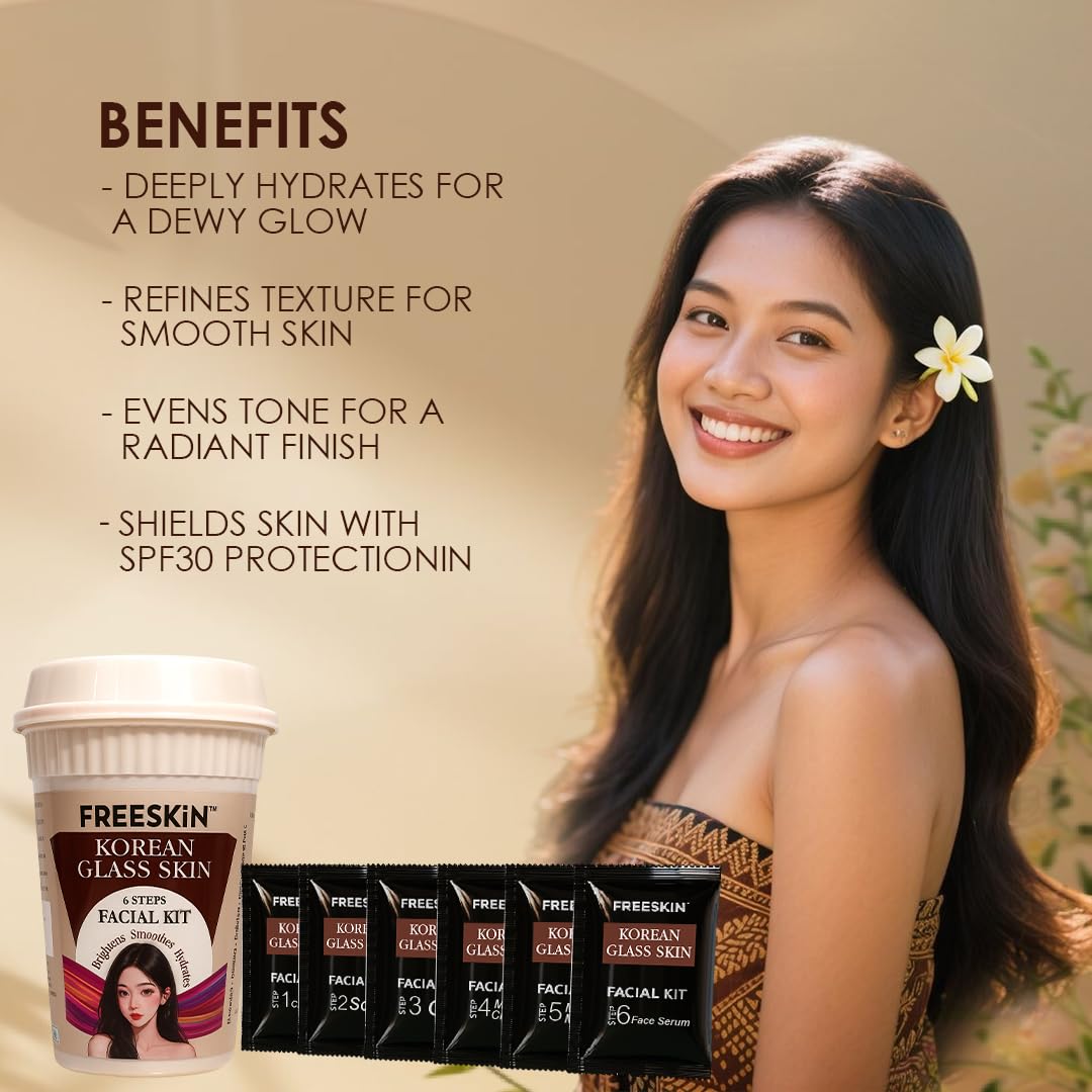 Freeskin Korean Glass Skin Facial Kit 6 Steps | Advanced Brightening, Smoothing & Hydrating Facial for Luminous Glass-Like Glow | Paraben Free | Sulphate Free | Mineral Oil Free | Silicone Free