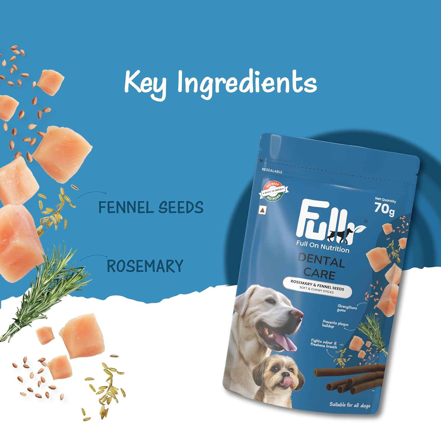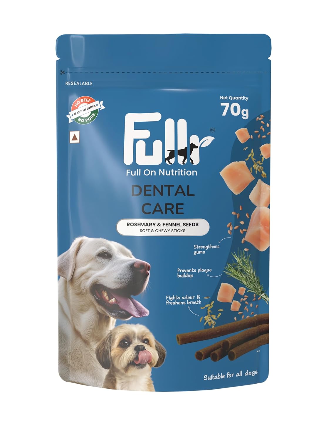 Fullr Dental Care Dog Treats | Soft & Chewy Sticks with Rosemary & Fennel | Supports Oral & Gum Health | Reduces Plaque & Tartar| Freshens Breath | Healthy Treats for All Breeds & All Life Stages, 70g