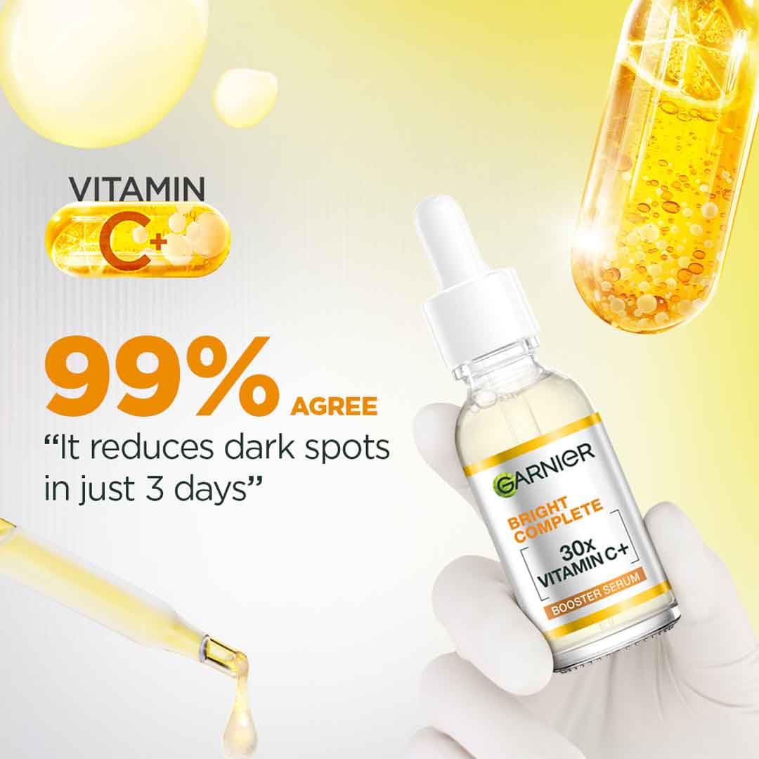 Garnier Skin Naturals, Bright Complete 30X Vitamin C Booster Face Serum, Increases Skin’s Glow Instantly ,Reduces Spots Overtime, with 2% Niacinamide + 0.5% Salicylic Acid,for all Skin Types