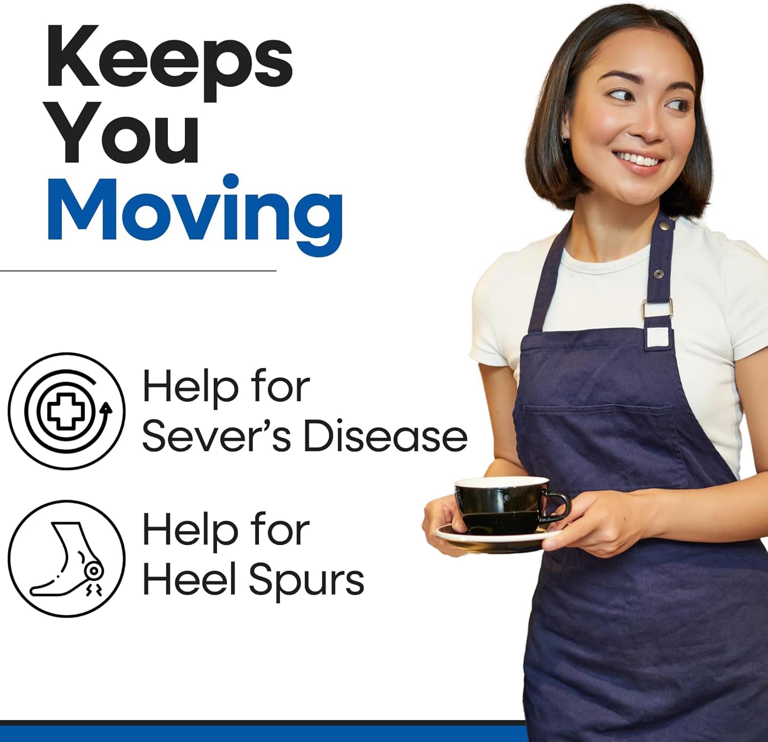 Providing flexibility and conforming to bony parts of the foot very useful for any prolonged standing or walking activity.