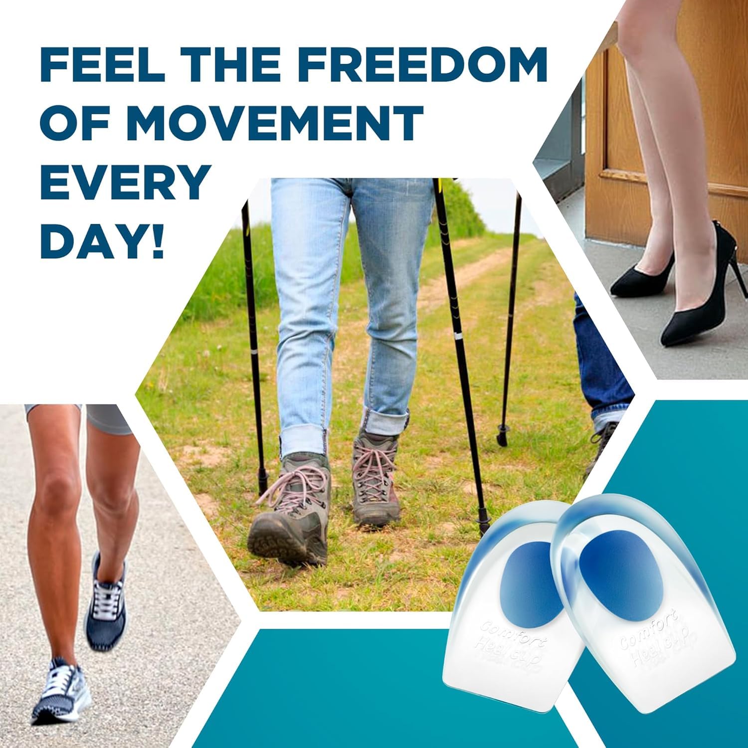 The comfortable gel heel cups can be worn in most shoe styles, including athletic shoes, dress shoes and boots, with or without socks.