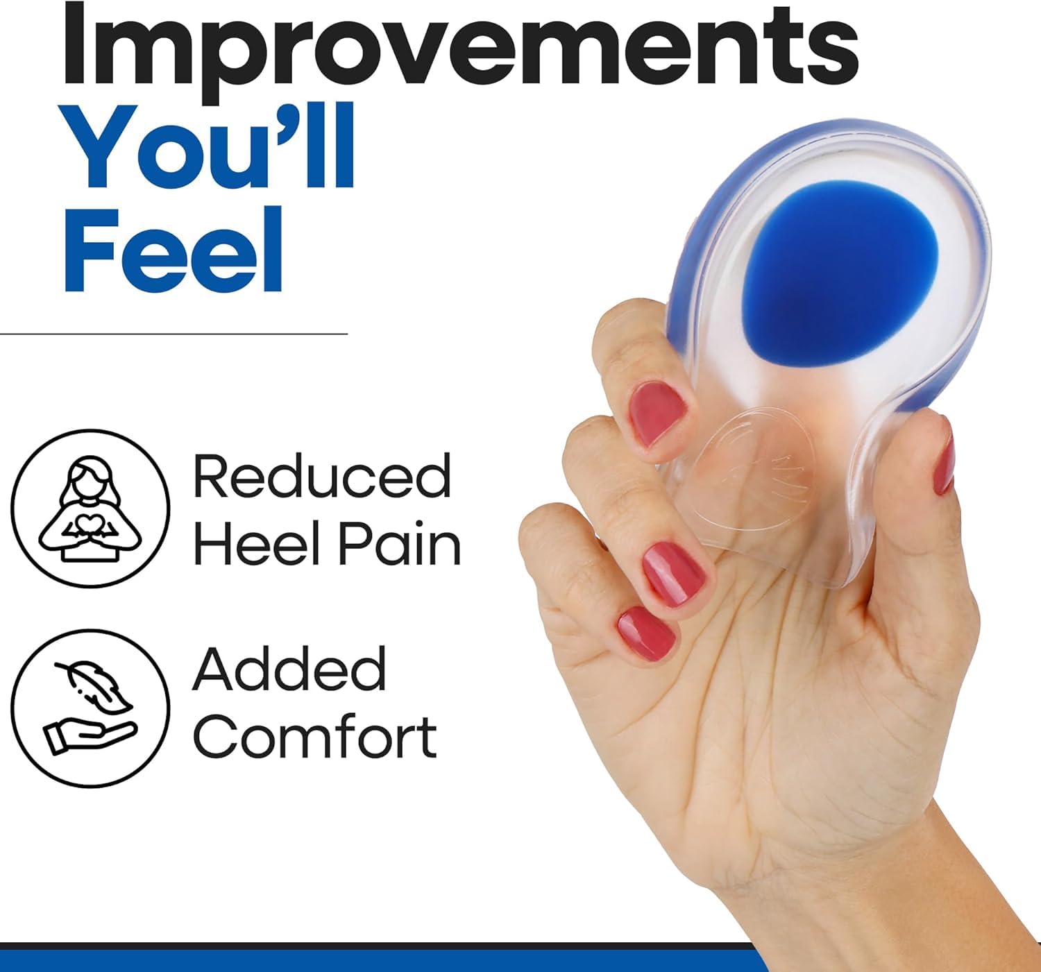 These Silicon heel Pads are hypoallergenic, non-toxic, non-flammable without odor great for heel ankle pain, heel spur, knee and back pain etc.