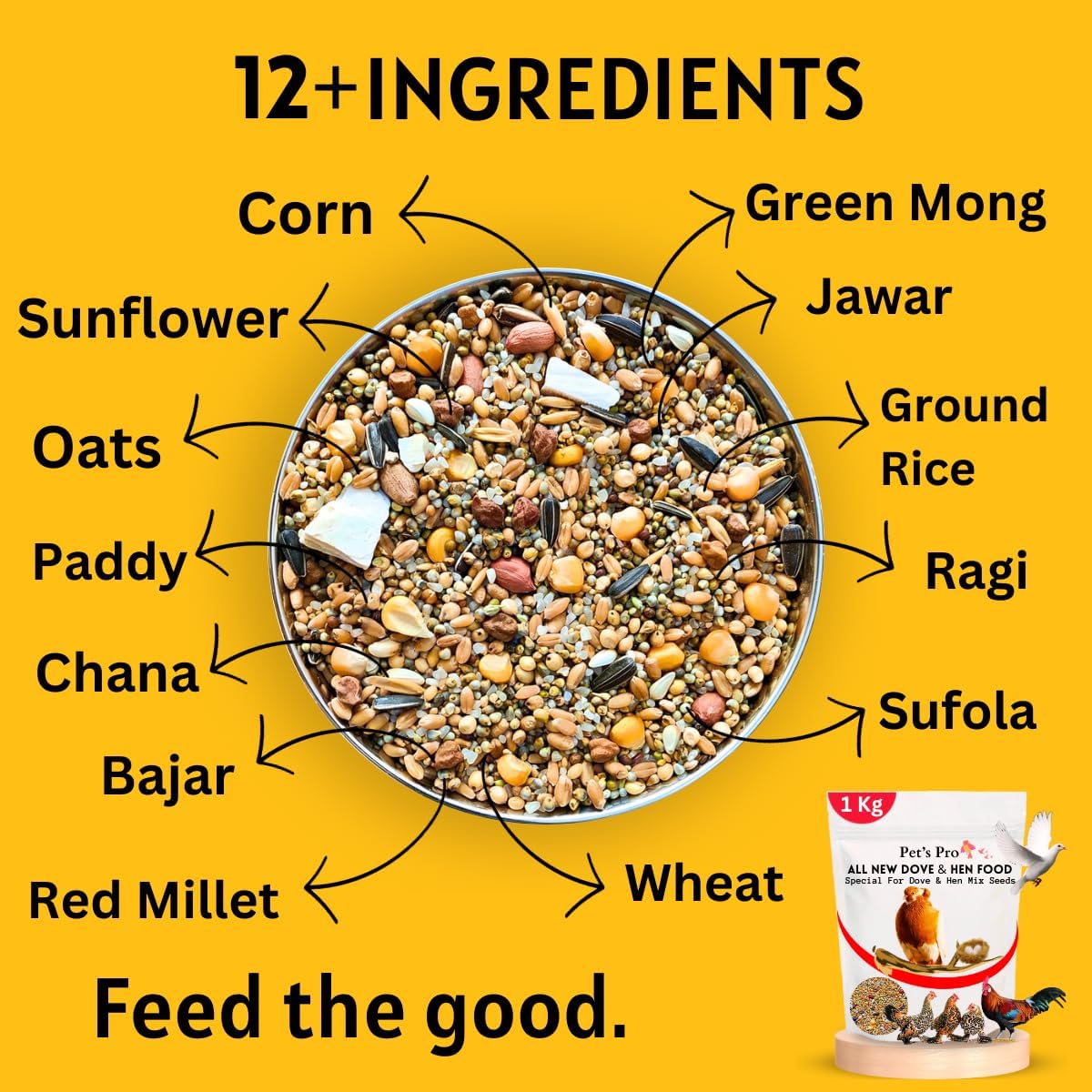 Generic Pets Pro Pigeon, Dove & Hen Food 1 KG | Specially Formulated with Multigrain & Seeds. High-Protein, Millet-Based Diet for Hen & Doves,All Life Stages