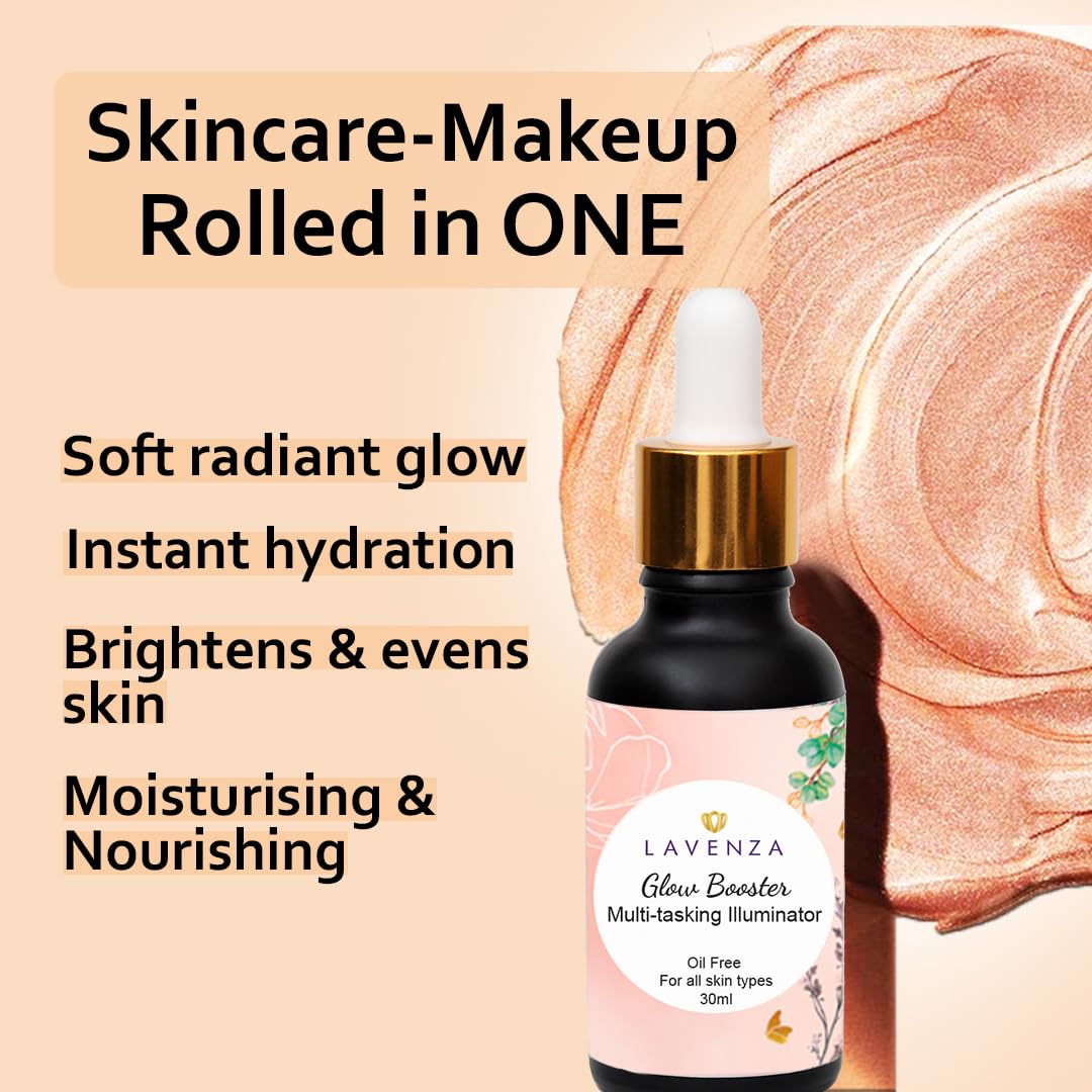 Glow Booster – Natural Illuminating Face Serum & Glow Highlighter | With Organic Floral Water, Marula & Vitamin B5 | Silicone-Free, Oil-Free, Dewy radiance | Makeup with Skincare | 30ml