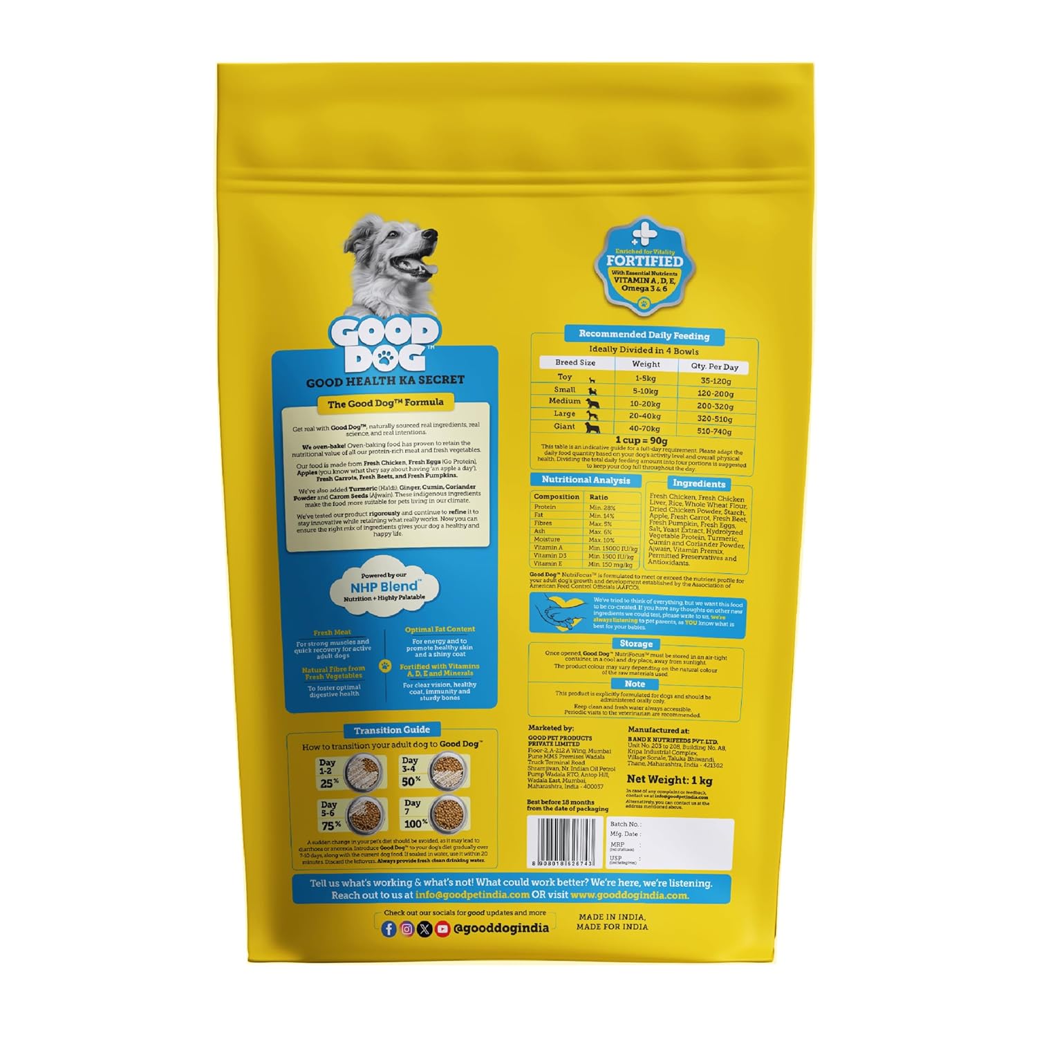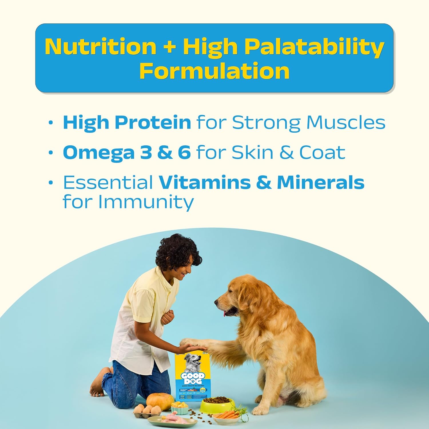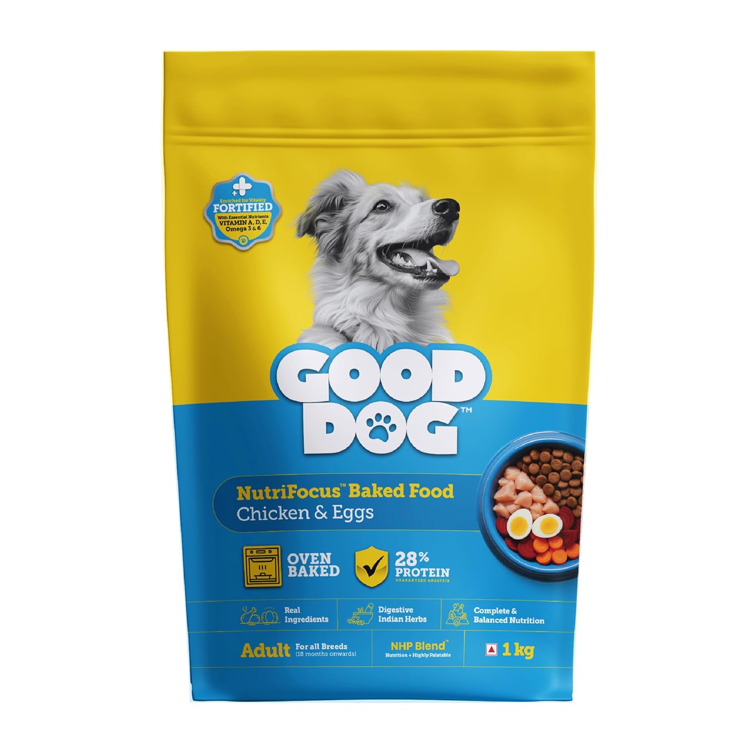 Good Dog Adult Dry Dog Food | Oven Baked | Real Chicken & Eggs | 1 Kg | High-Protein | High Palatability | Nutritionally Formulated with Vitamins & Minerals | Indian Herbs | Suitable for All Breeds