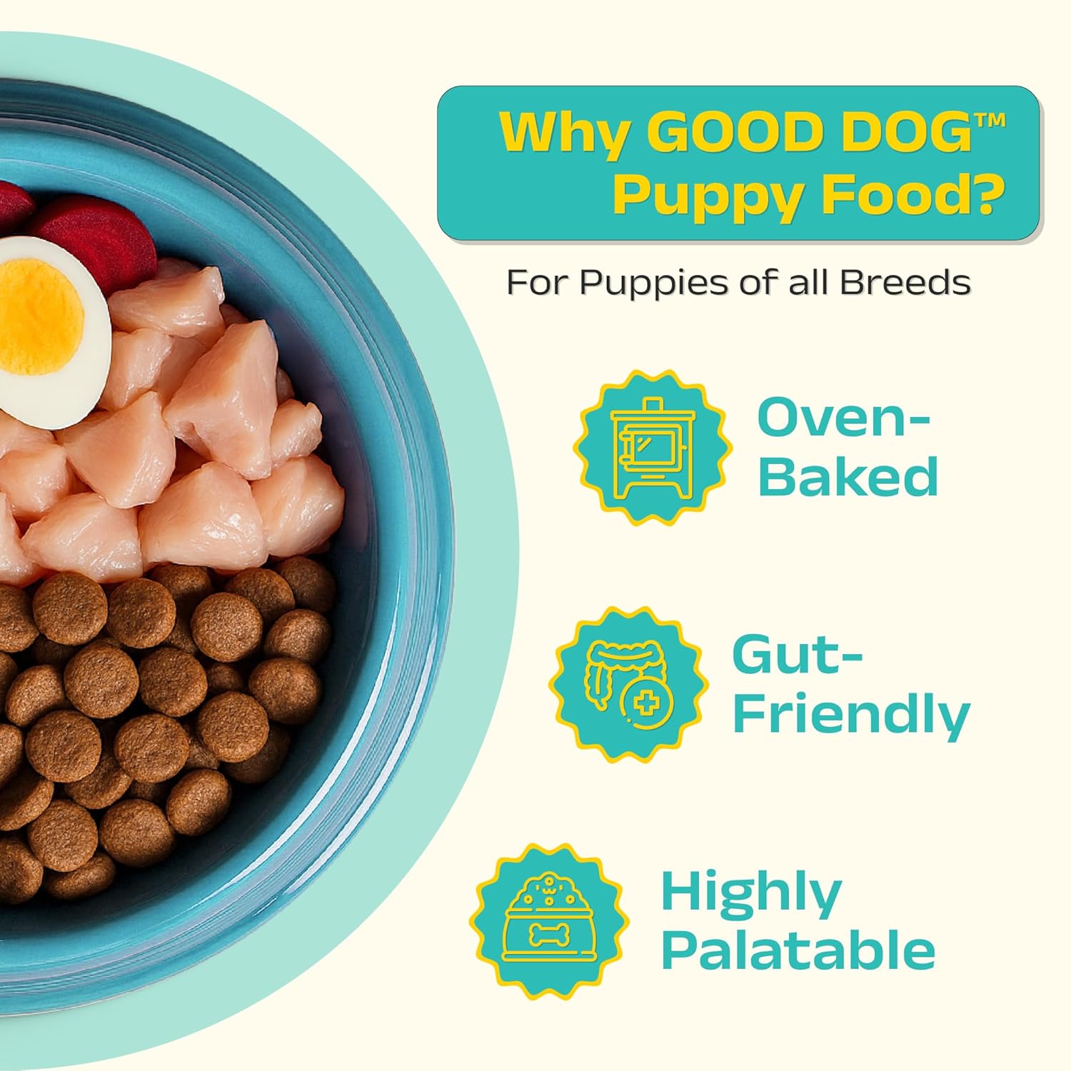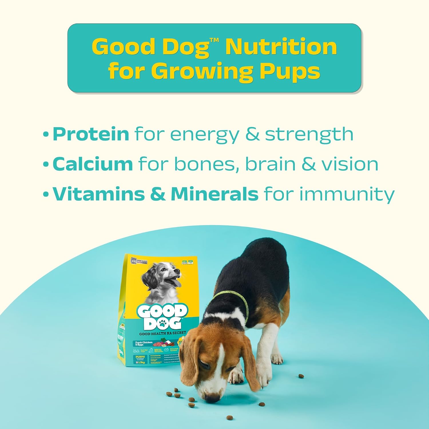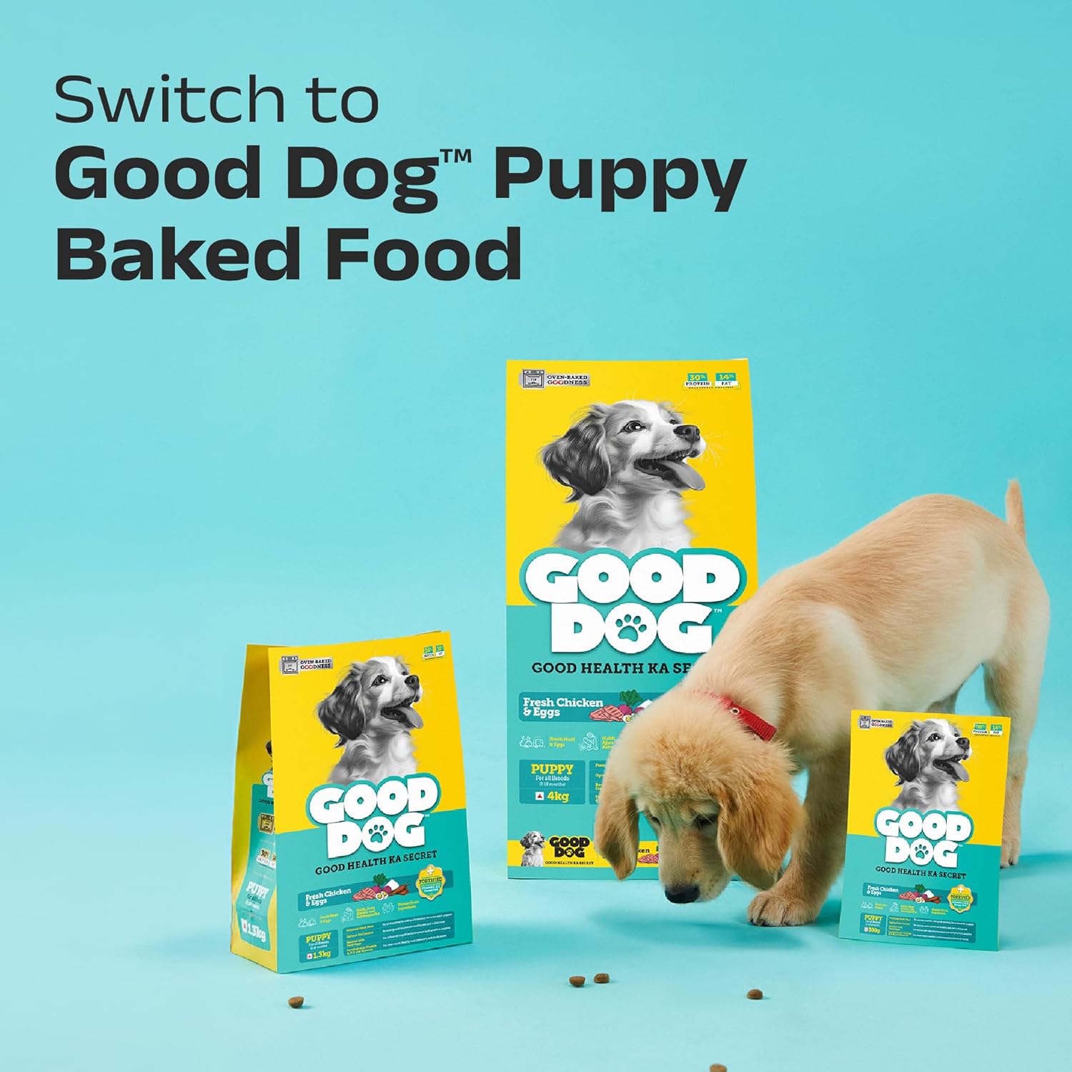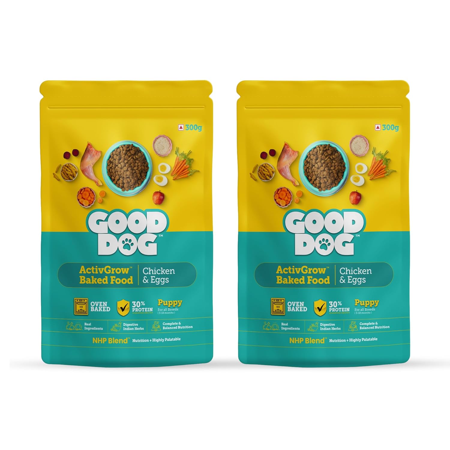 Good Dog Puppy Dry Dog Food | Oven Baked | Fresh Chicken & Eggs | 300g (Pack of 2) | Palatable Meal for Healthy Growth, Strong Bones, Immunity & Digestion | Puppy Food for All Breeds