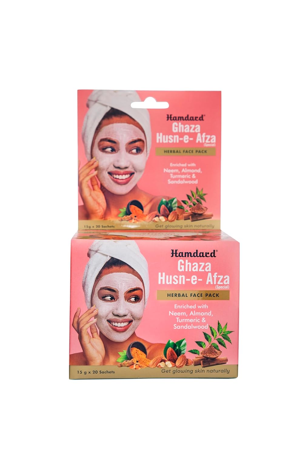 Hamdard Herbal Face Pack Powder (Ghaza Husn-e-Afza) for Glowing & Healthy Skin | Enriched with Neem, Almond, Turmeric & Sandalwood | Helps in Reducing Tan & Wrinkles- 300 gm (15 g X 20 Sachets)