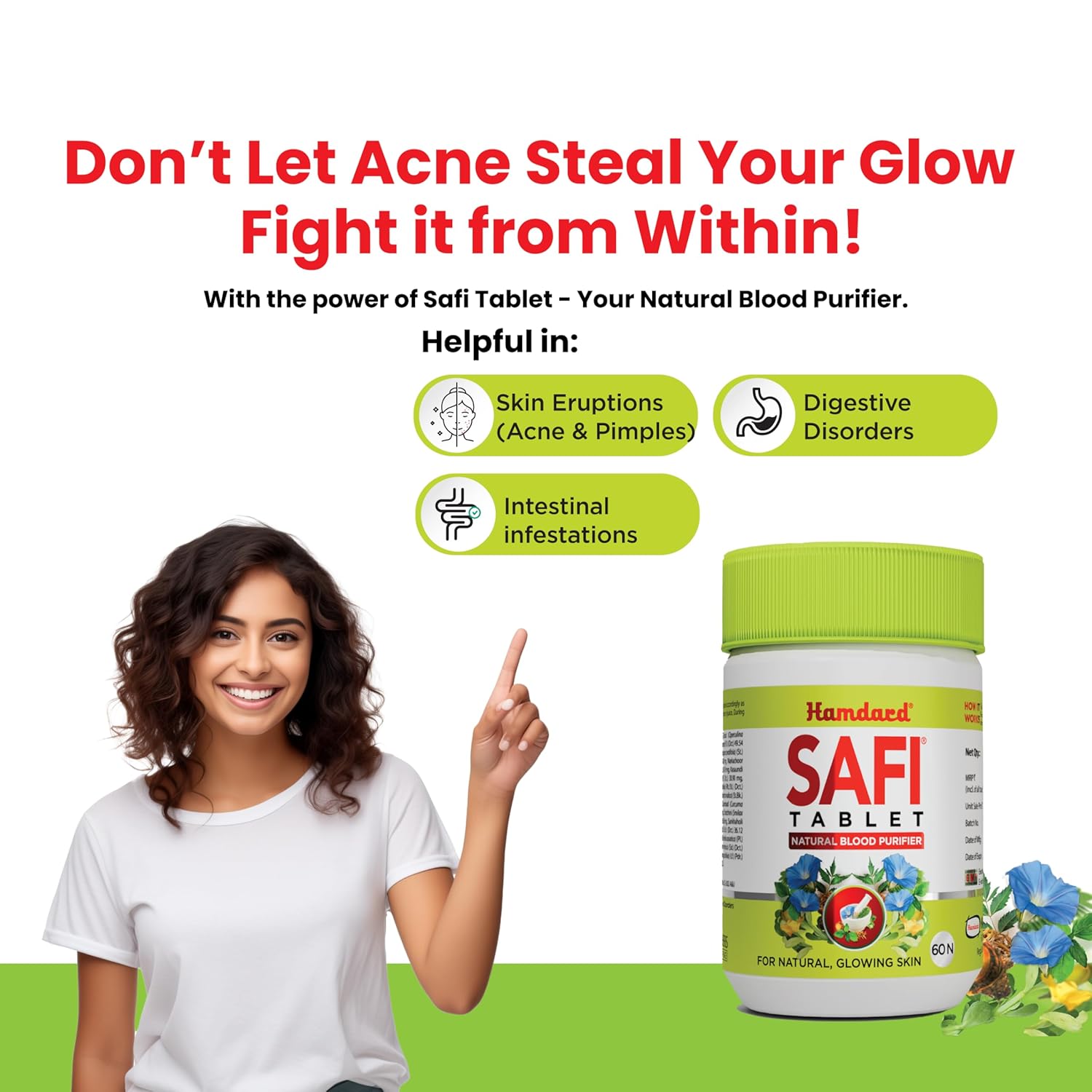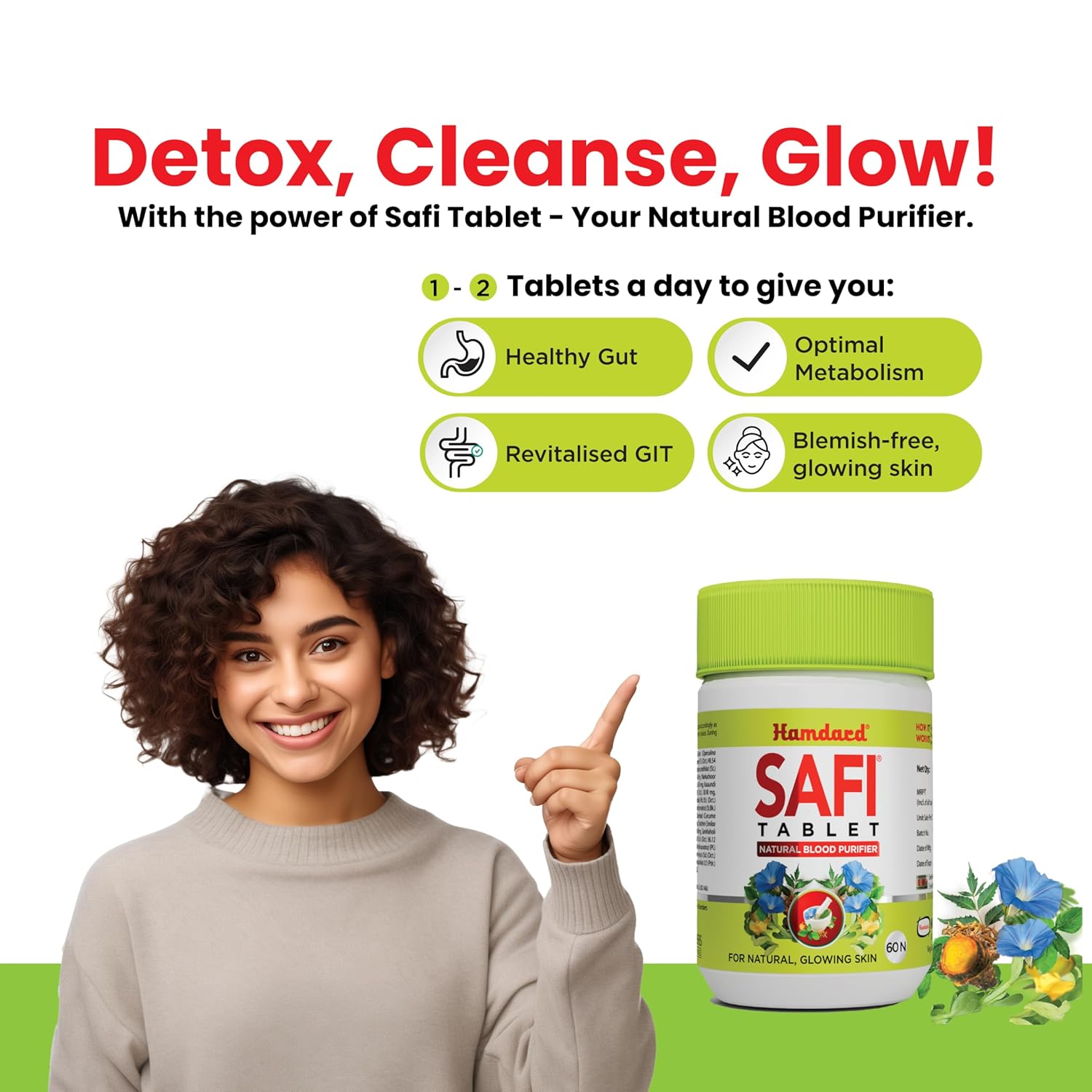 Hamdard Safi Tablet for Healthy & Glowing Skin | Pack of 1 | Natural Blood Purifier | Anti-Bacterial & Detoxifier – 60 Tablets