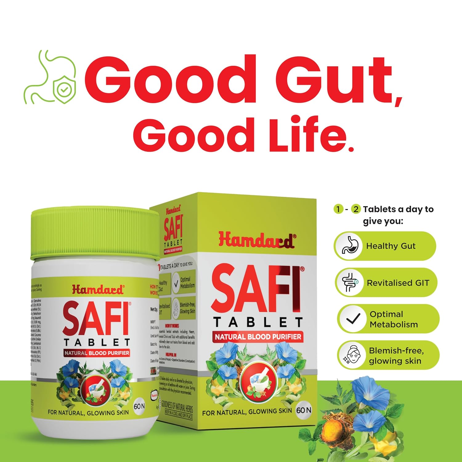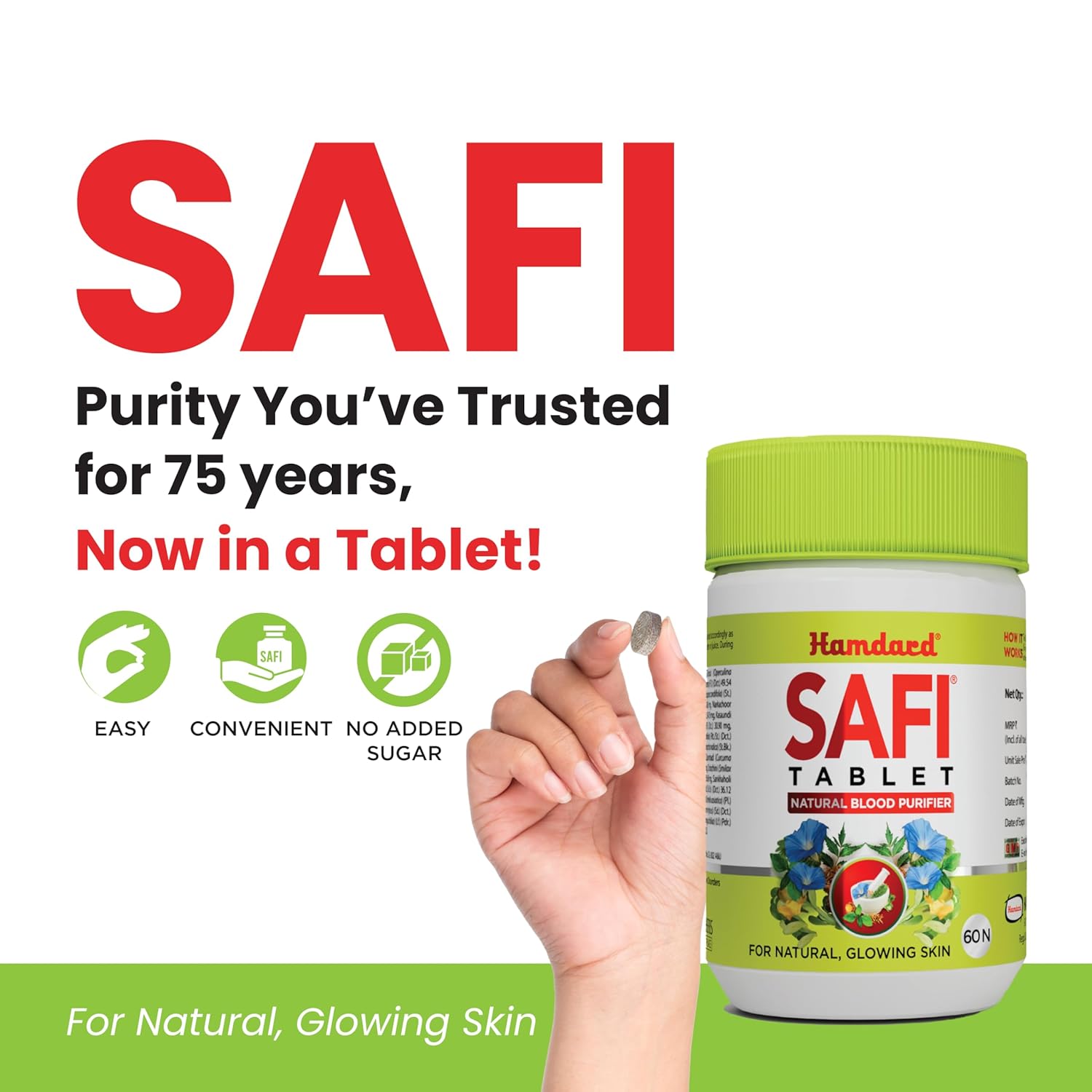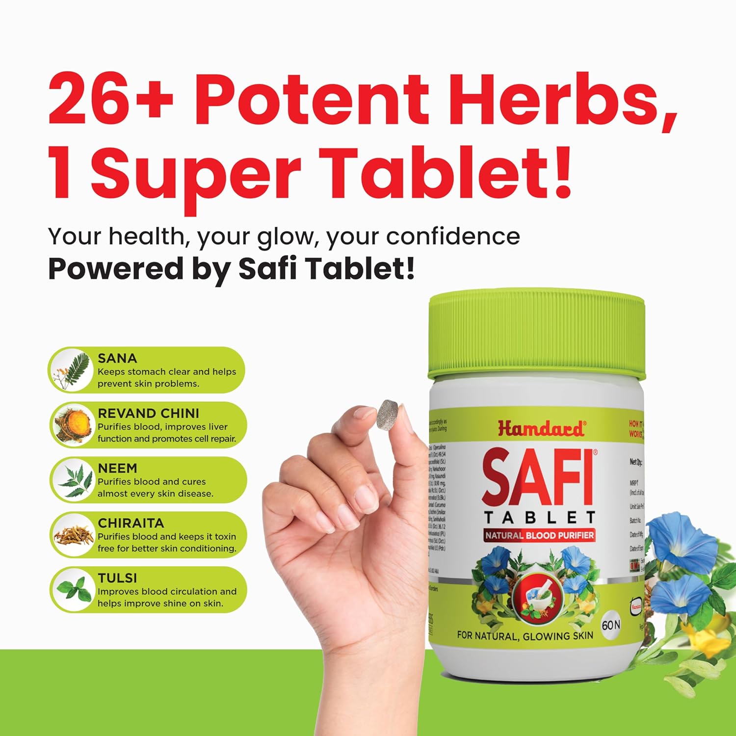 Hamdard Safi Tablet for Healthy & Glowing Skin | Pack of 2 | Natural Blood Purifier | Anti-Bacterial & Detoxifier – 60 Tablets Each