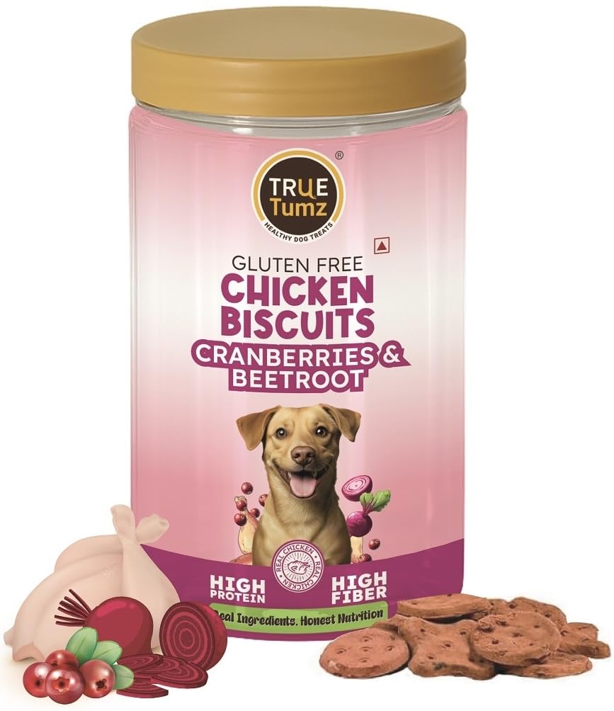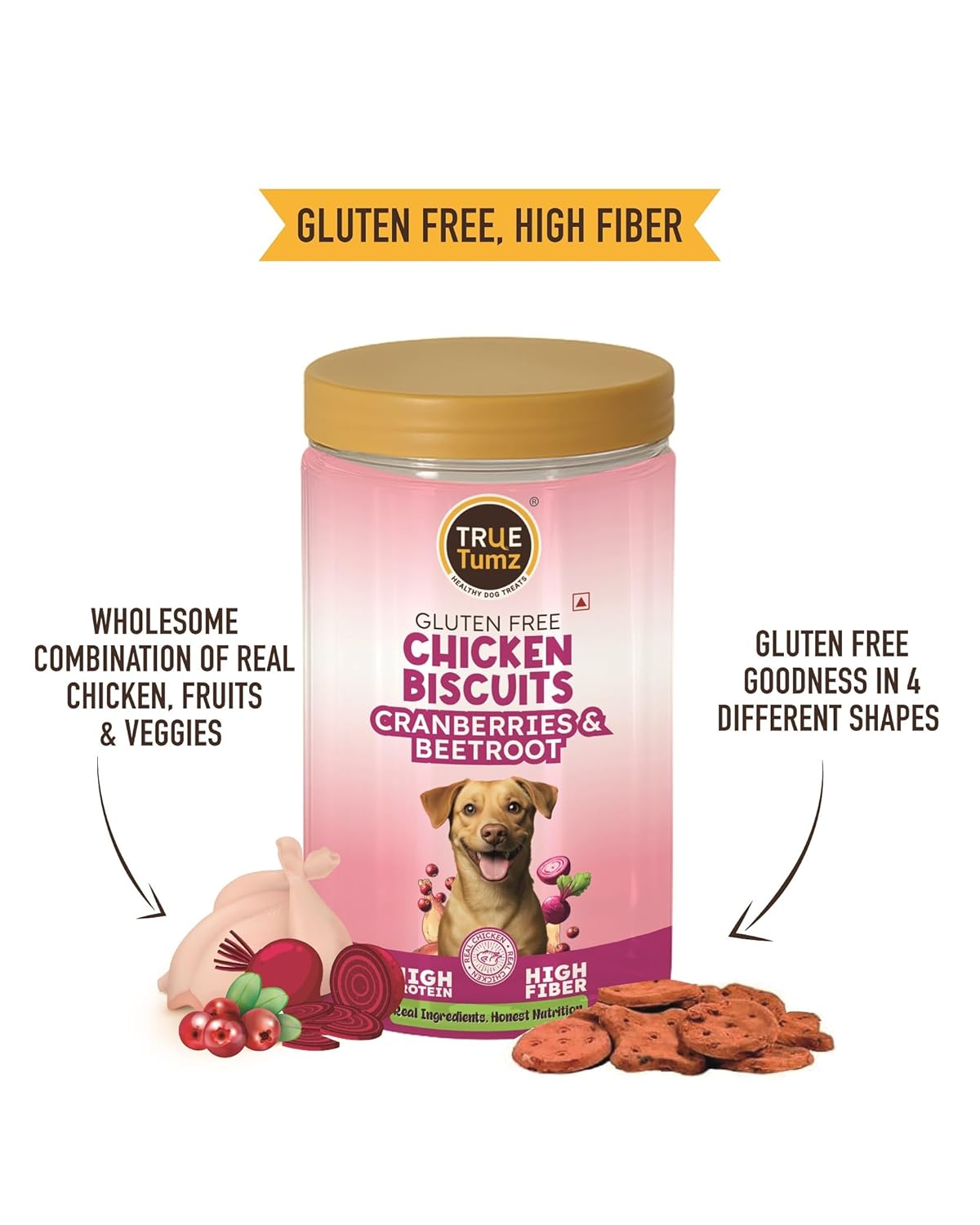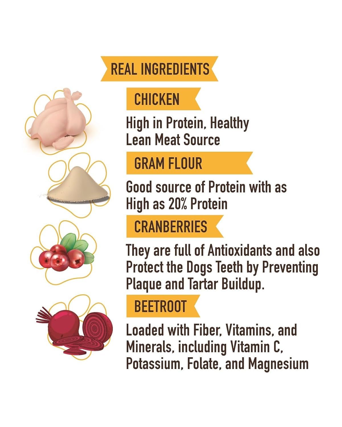 Healthy Dog Biscuits with Real Chicken, Real Cranberries and Real Beetroot. High Fiber, High Protein, Gluten Free, Human Grade Ingredients, Rice Flour and Chana Flour (275 G),All Life Stages