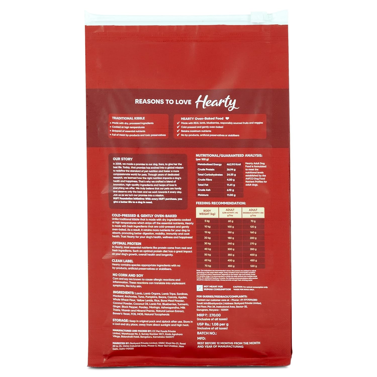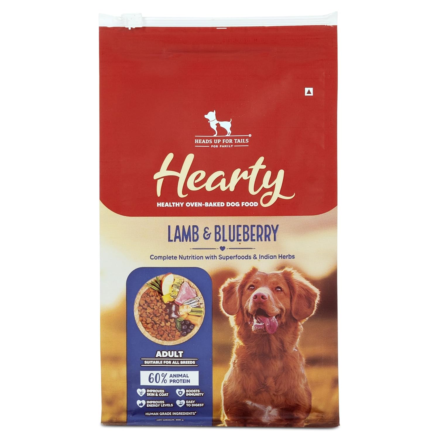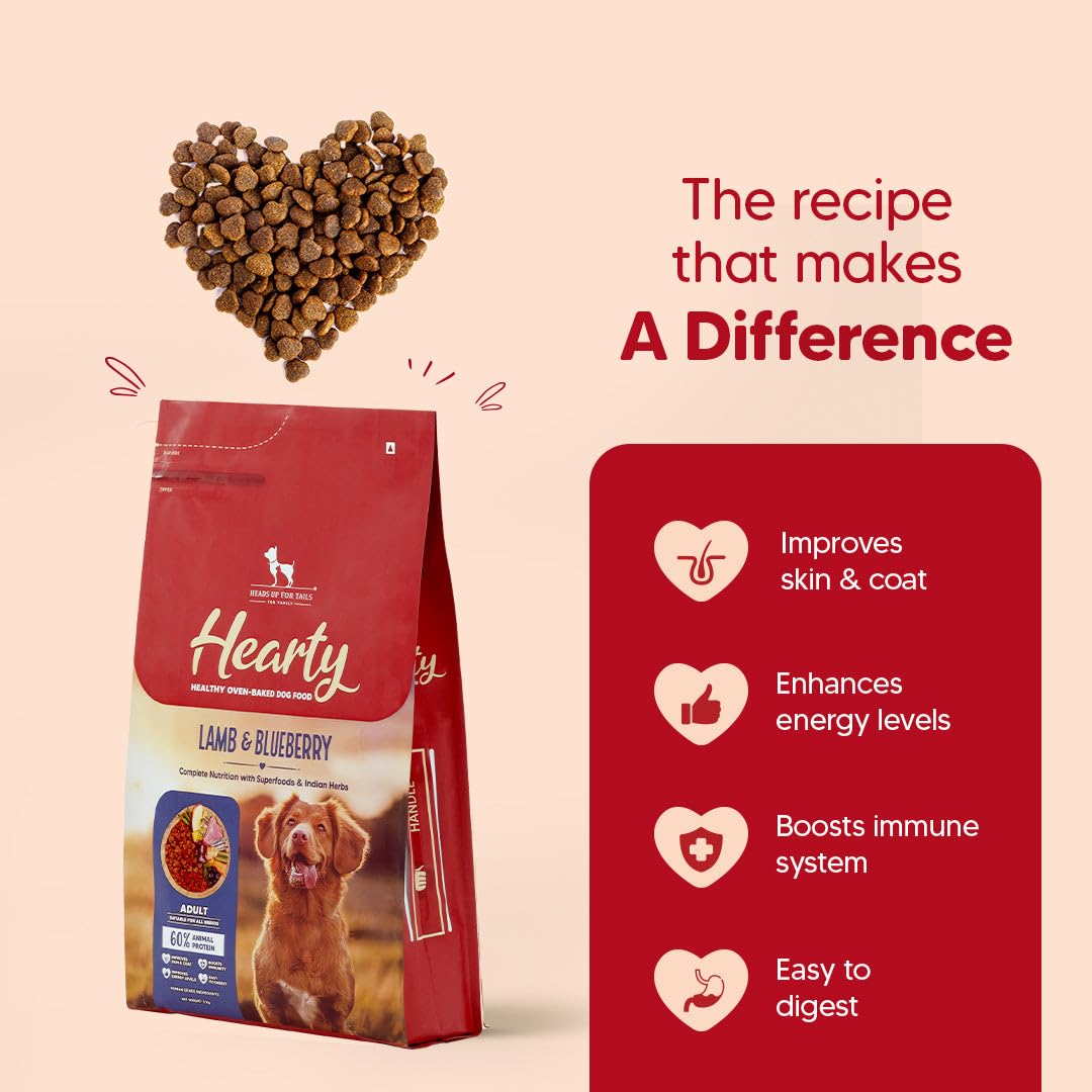 Hearty by HUFT Lamb & Blueberry Dry Dog Food – 250 gm | Adult Dog Food with Superfoods | Oven-Baked Kibble | Complete & Balanced Pet Nutrition | No Artificial Flavours or Fillers