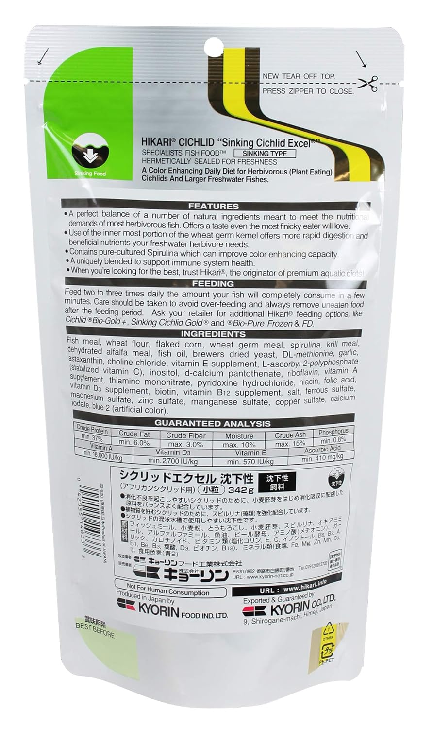 Hikari Fish Cichlid Excel Sinking Pellets For Pets, Mini 342 Gm, All Life Stages