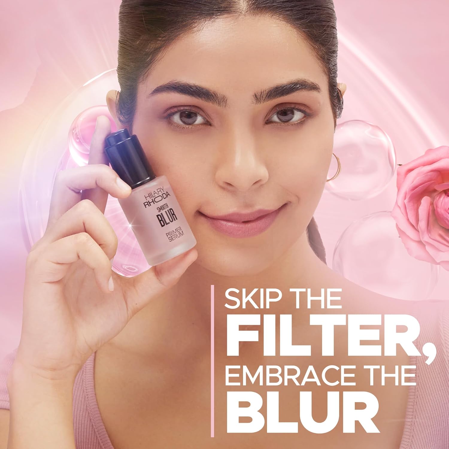 Hilary Rhoda Smooth Blur Primer Serum for face | Pore Minimizer | Niacinamide Infused | Hydrating Makeup Primer | Smooth & Glowing Skin | (Rose Shade 01) – 30ml