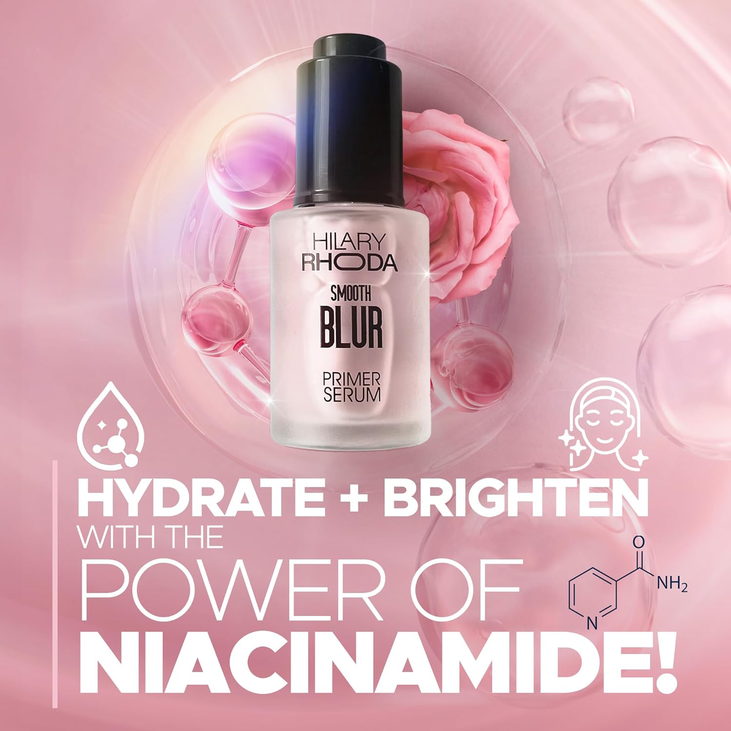Infused with Niacinamide: Hilary Rhoda’s SmoothBlur Primer Serum is enriched with niacinamide, a skincare powerhouse known to improve skin texture and reduce the appearance of blemishes. Incorporating the primer serum into your routine helps to soothe and even out your complexion.