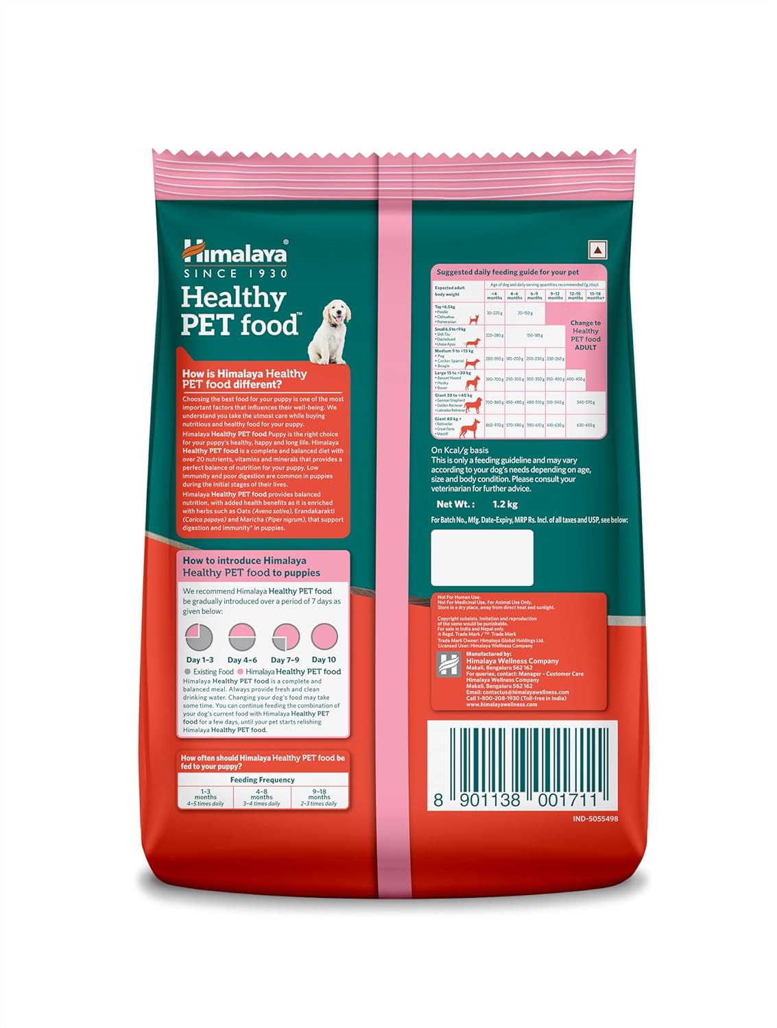 Himalaya Healthy PET Food for Puppies | Chicken & Milk | 1.2kg | Complete & Balanced Nutrition with Black Pepper, Oats & Papaya