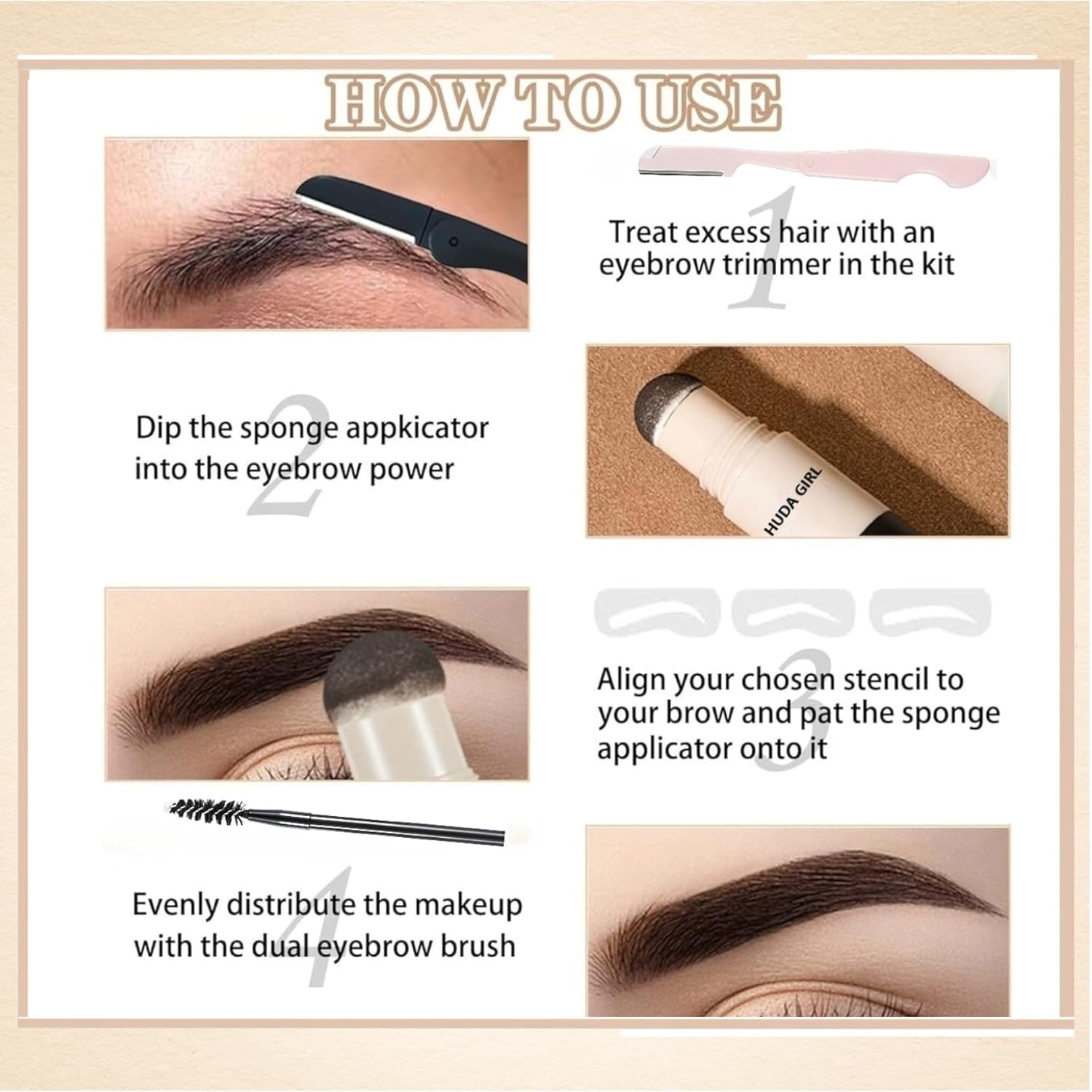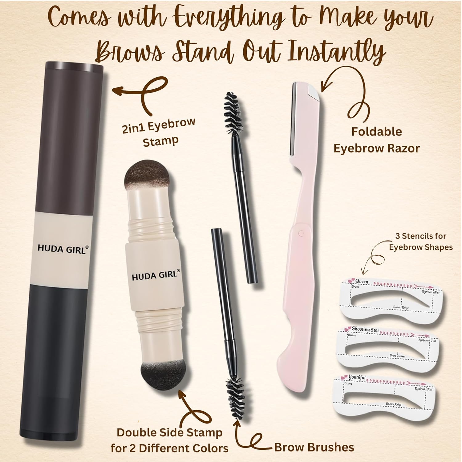 Complete Eyebrow Kit: The set includes an eyebrow brush, 3 stencils, and an eyebrow razor, making it a comprehensive eyebrow shaper for women. Perfect for achieving precise brow tint and shape with an eyebrow stamp and eye brow filler for women.