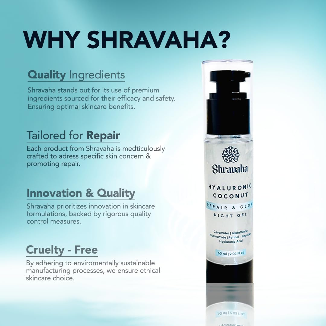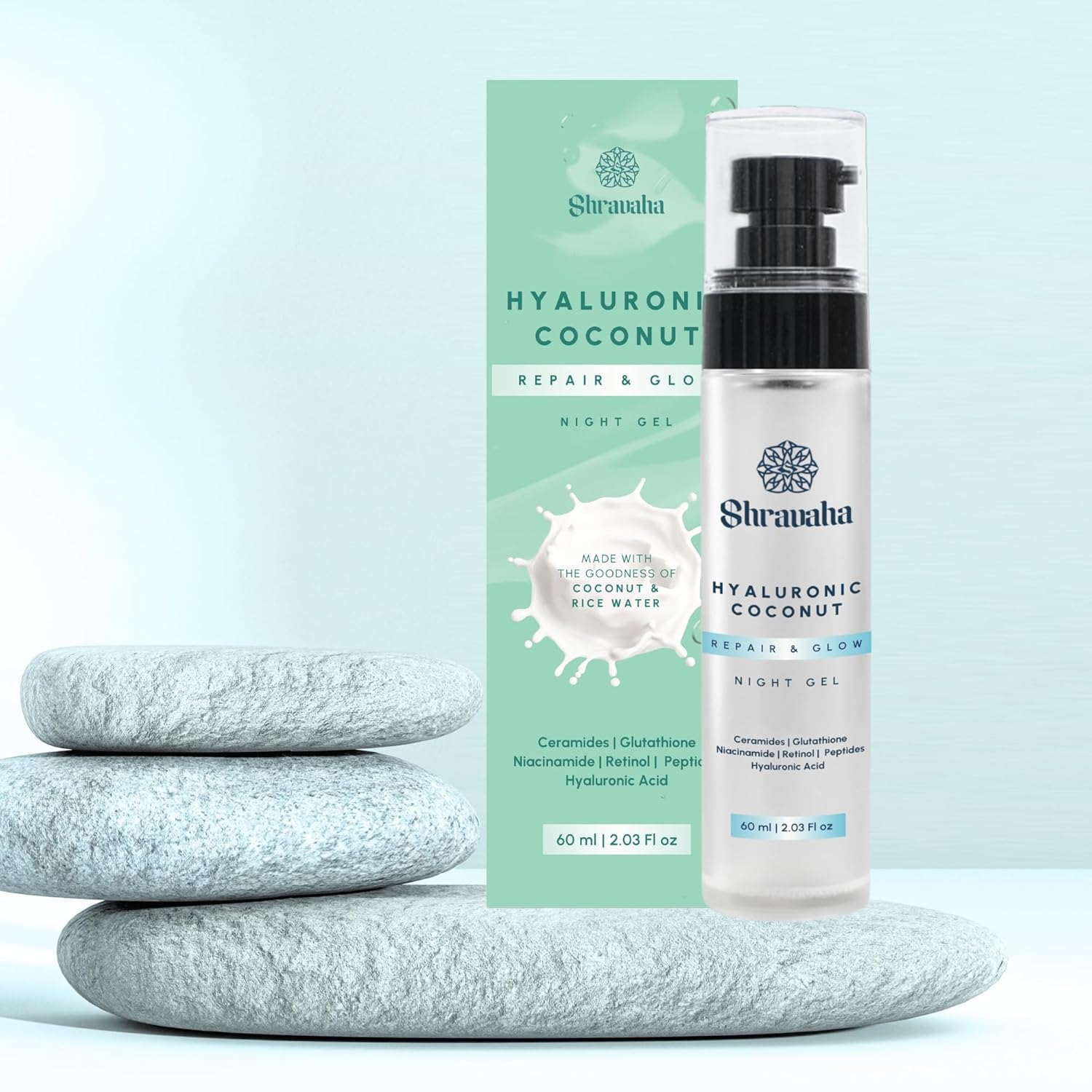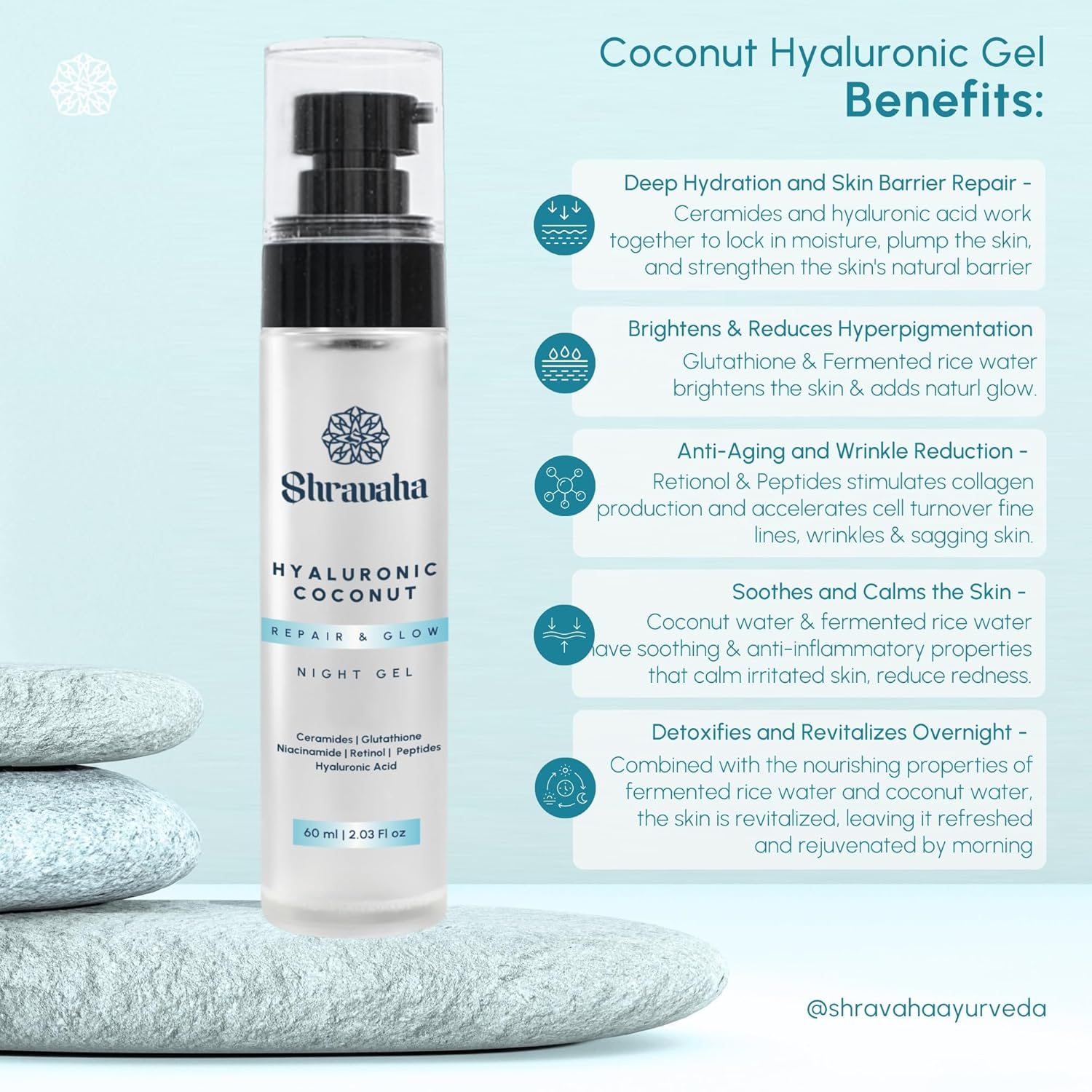 Hyaluronic Coconut Repair & Glow Night Gel – Anti-Ageing Gel for Women & Men | Enriched with Retinol, Ceramides, Peptides, Glutathione for Bright & Youthful Skin – 60 ml