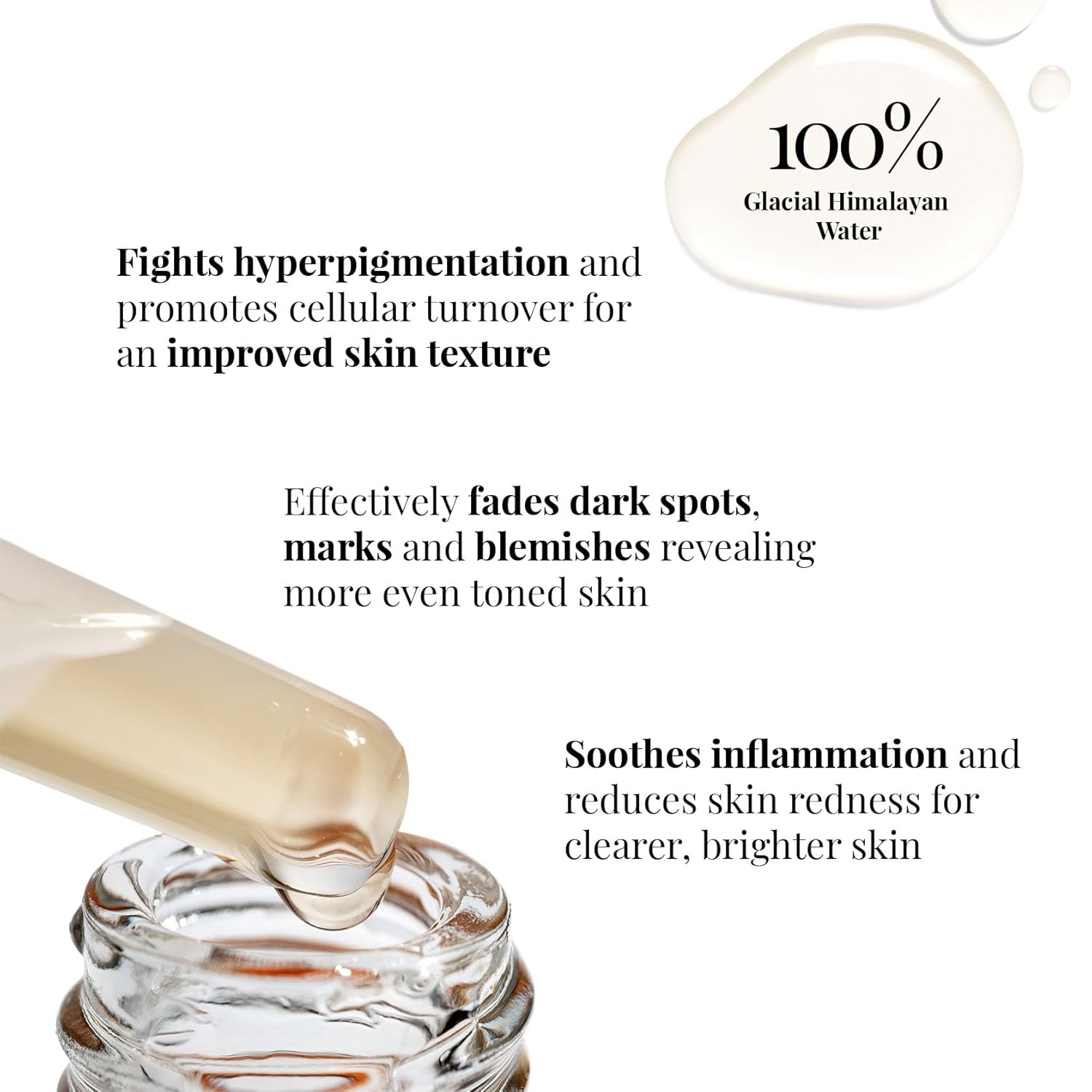 Hydrates with Hyaluronic Acid: Deeply hydrates and plumps skin, restoring moisture with Hyaluronic Acid and Himalayan Glacial Water. Ideal for all skin types, this serum leaves your skin soft, supple, and glowing.
