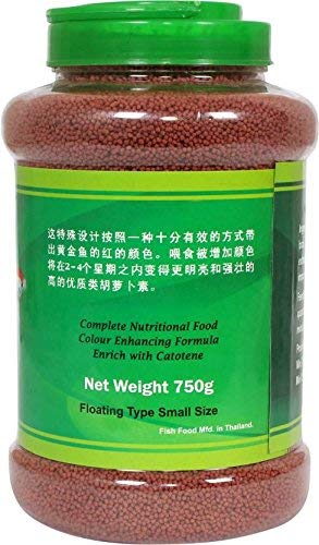 Complete Nutritioal Food, Colour Enhancing Formula Enrich With Catotene Net Weight 750gm, Ingrdients : White Fish Meal, Soyabean Meals, Rice, Bran, Wheat Flour, Corn Meal, Vegetable Protein Extract, Leithin, Vegetalbe Oil, Vitamin A, C, E And Important Minerals and Trace Elements, Feeding Guide : Feed 3 to 4 Times Daily But in Small Quantity Which Can Be Eaten in Approximate 2-3 Minutes, Proximate Analysis : Min. Crude Protein 32%, Max Crude Fibre 3 %, Min Crude Fat 4%, Max. Moisture 9%