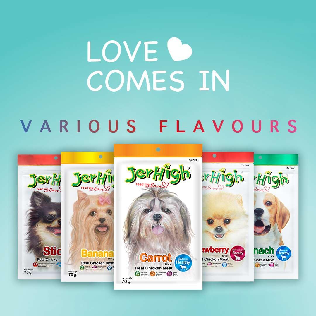 JerHigh Real Chicken Food Treat Spinach, Blueberry, Carrot, Strawberry, Milk, Banana Flavor 6 Pack Combo Set 70G for Dogs by Dogsncats, All Life Stages