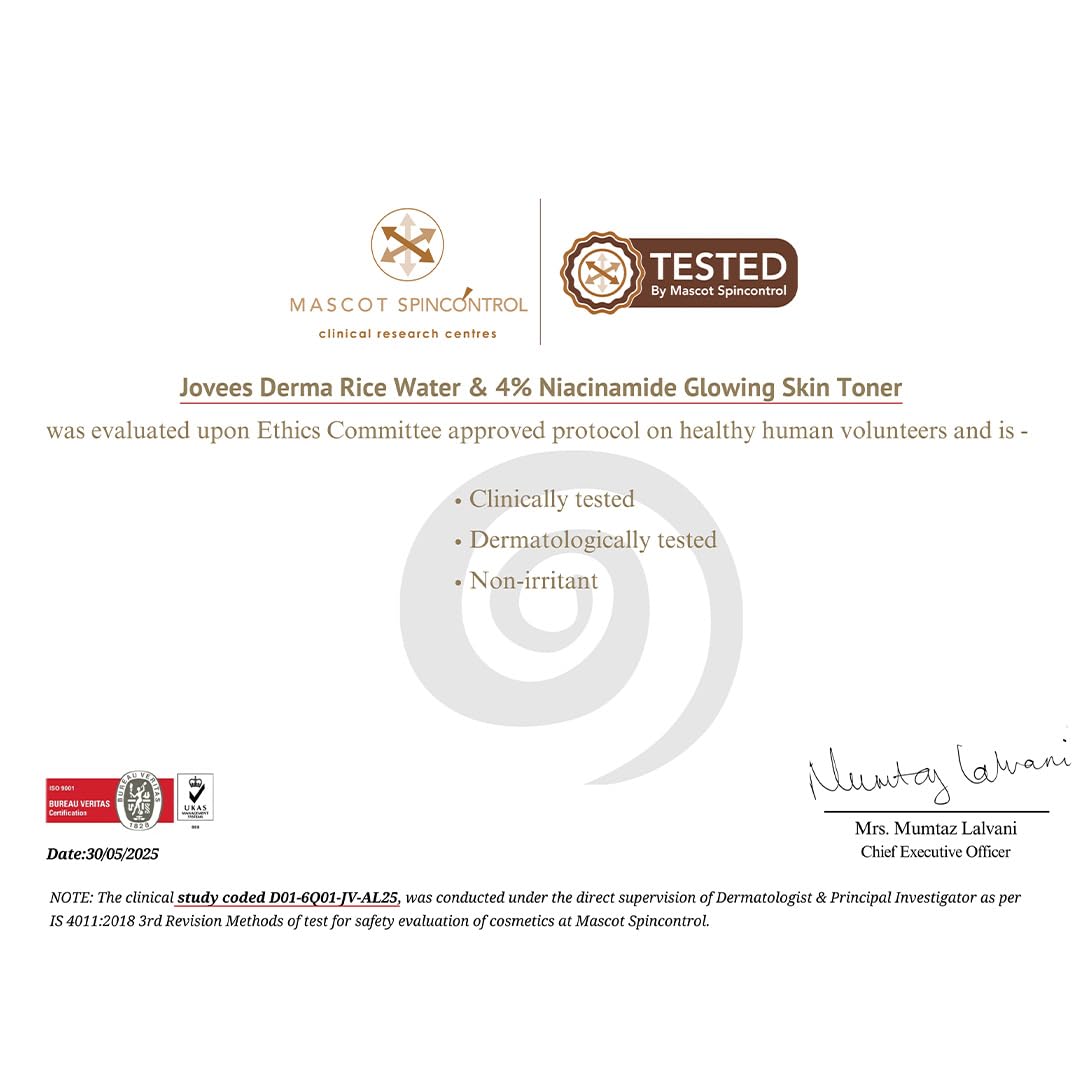 Jovees Derma 4% Niacinamide & Rice Water Toner Enriched With Rice Extracts for Glass Skin Glow | Hydrates Skin, Fades Blemishes & Pore Tightening Mist | Normal to Dry Skin | 100ml