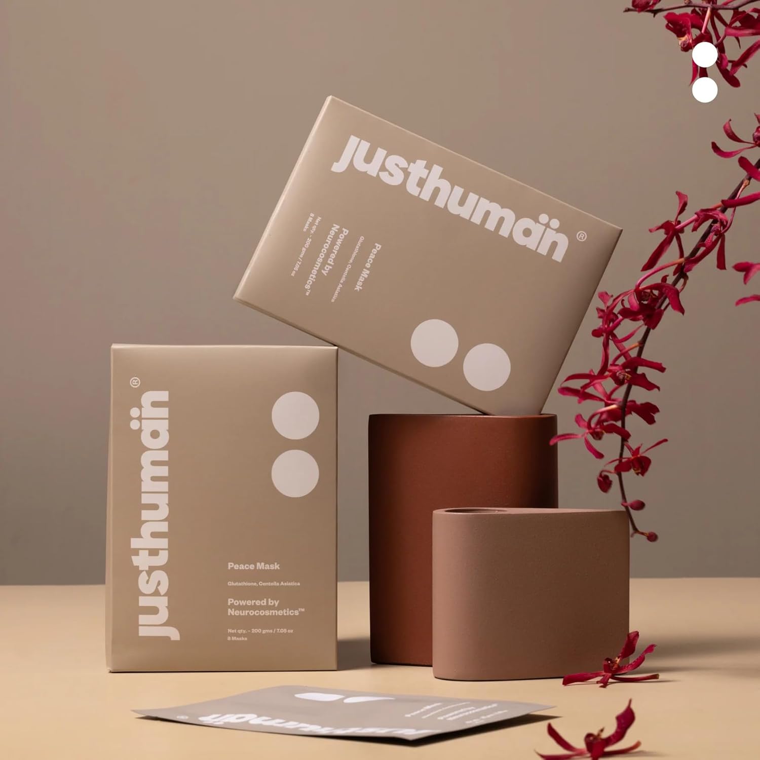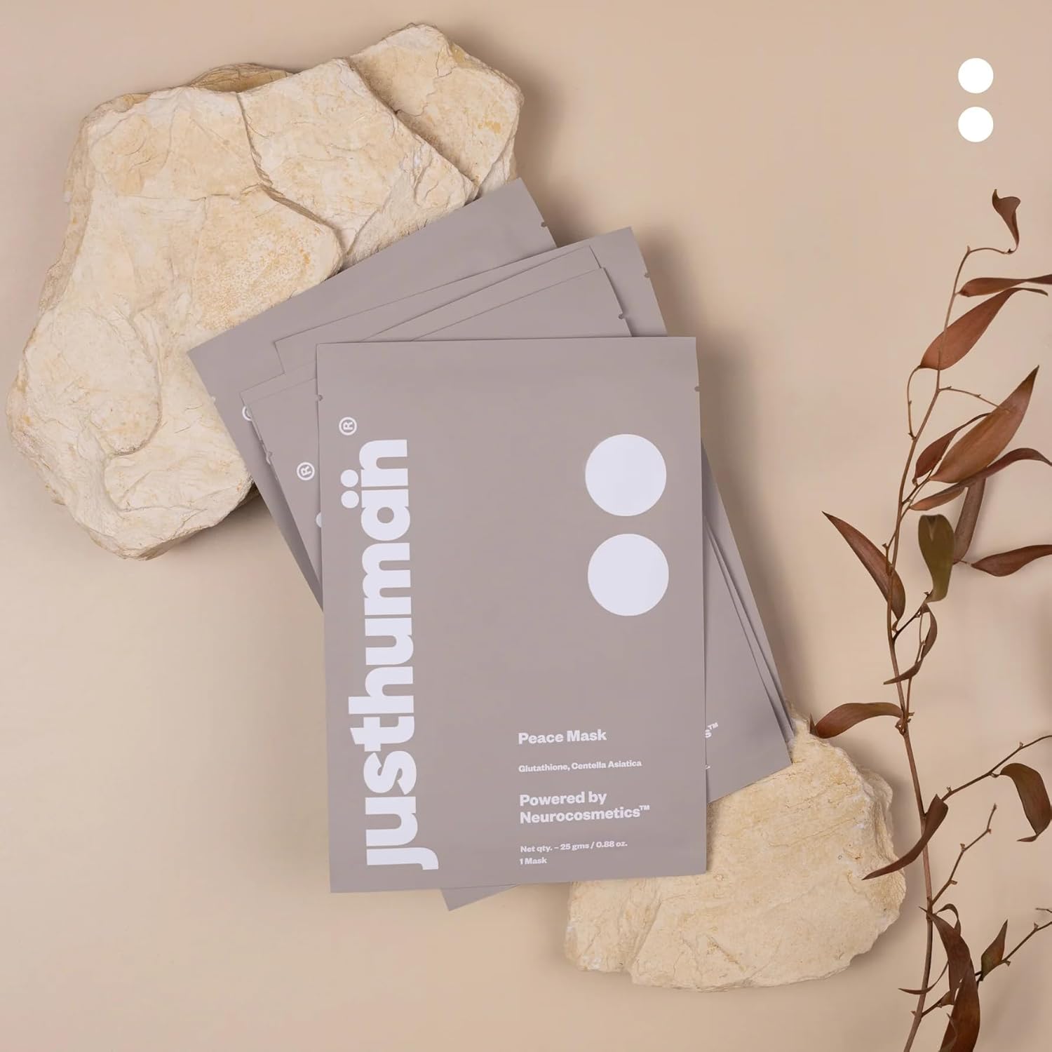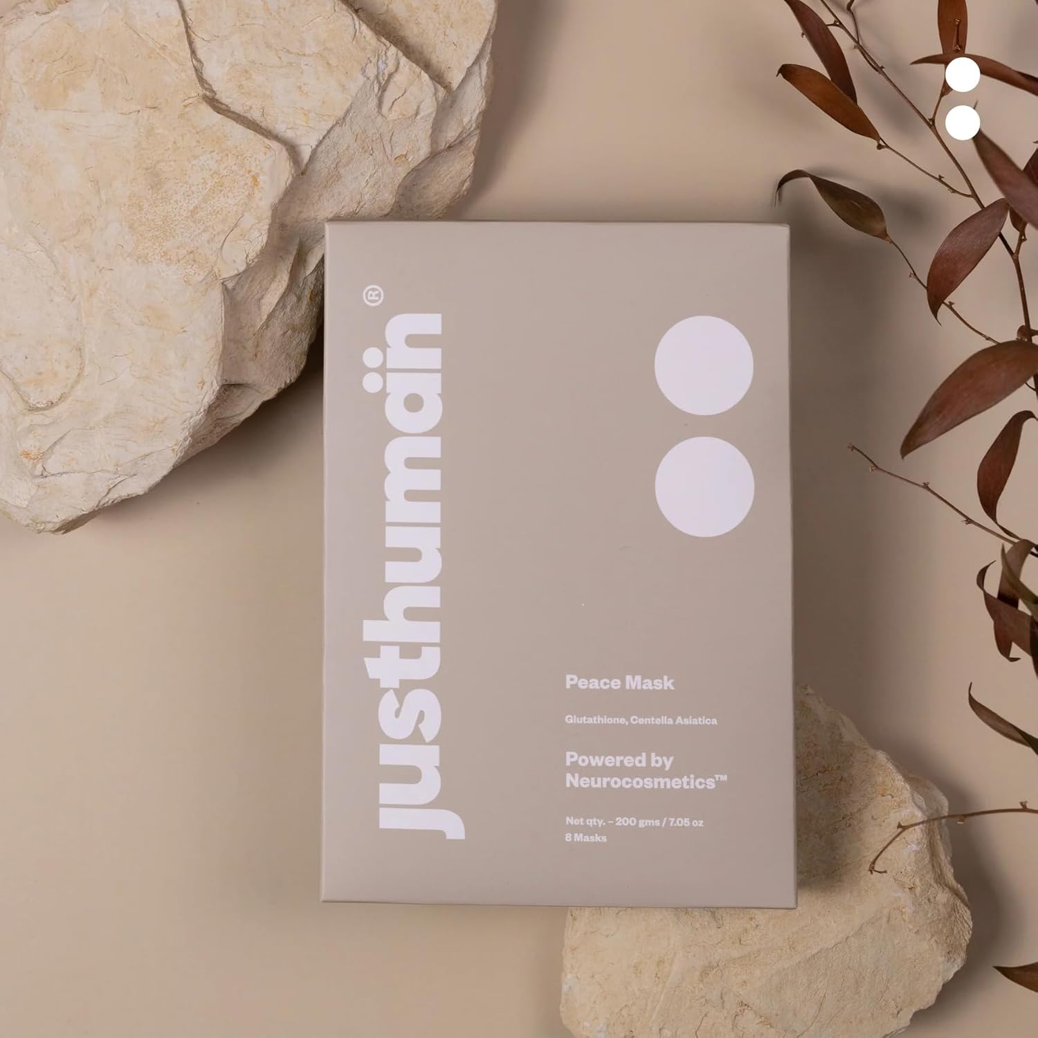 Justhuman Peace Mask, Made in Korea, Neurocosmetic Restorative Sheet Mask for Calming, Hydrating & Brightening Skin | Glutathione + Niacinamide + Centella | Vegan & Cruelty-Free | Pack of 8