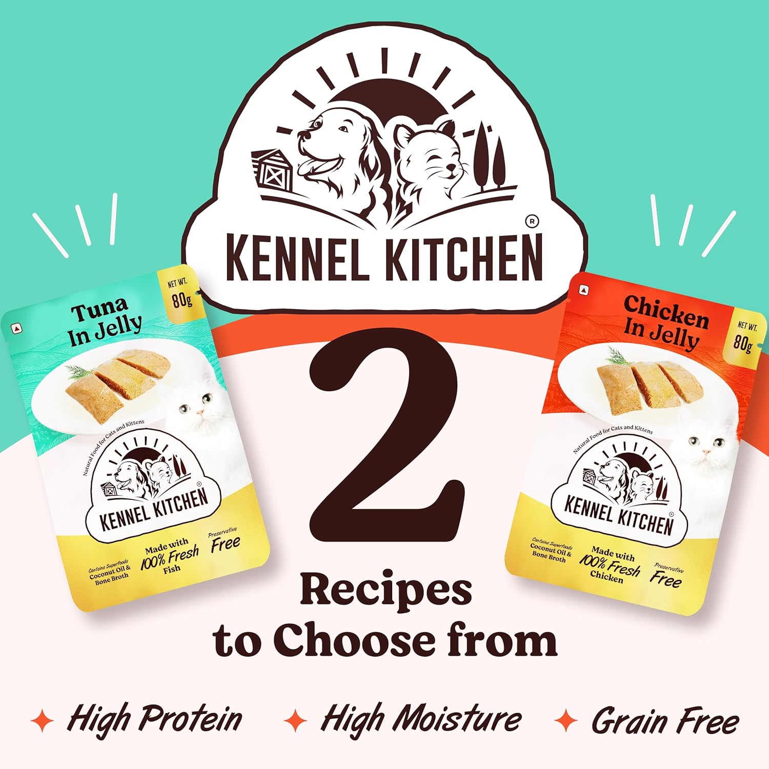 Kennel Kitchen Tuna in Jelly,12 x 80g Each. Grain Free Wet Cat Food for Adults and Kittens,