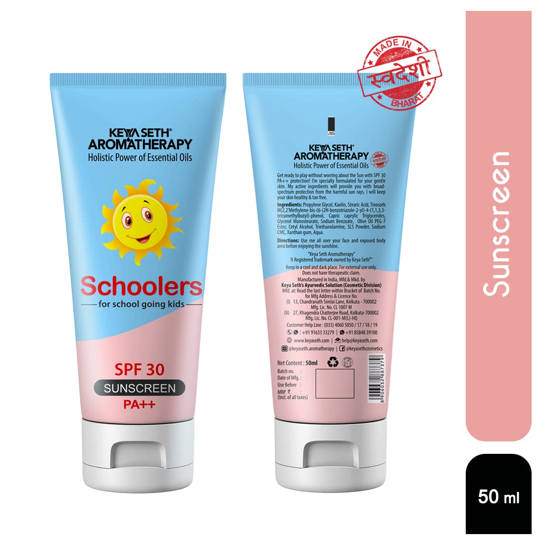 KEYA SETH AROMATHERAPY, DEVICE OF DROP Keya Seth Aromatherapy, Schoolers Sunscreen SPF 30 PA++ for Kids Mineral Based Lotion -Paraben & Sulphate Free 50ml.